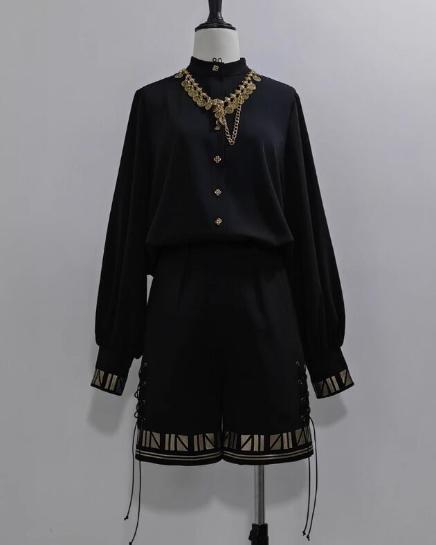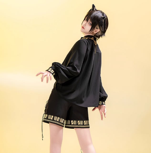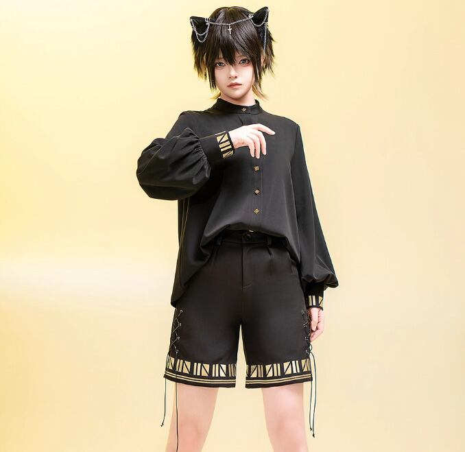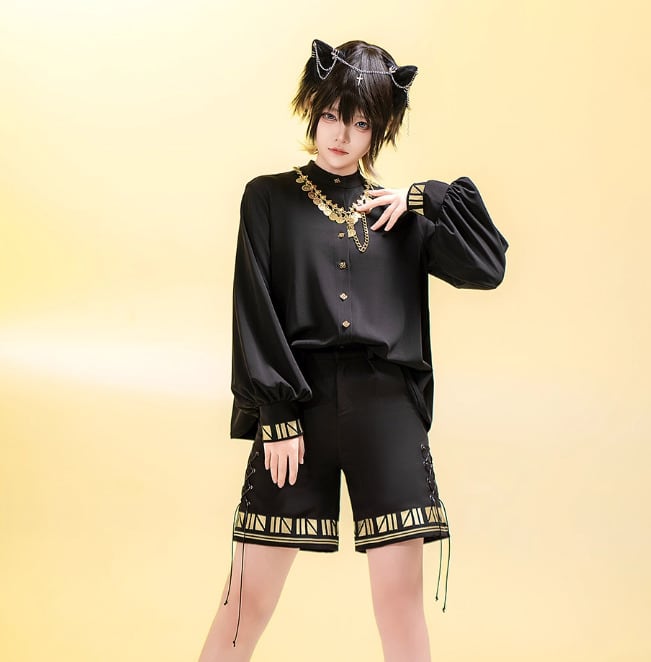 男装 皇子 ブラウス のみ 黒猫 童話風 長袖 レトロ 立ち襟 ハイネック ダークゴシック クール カッコいい 格好良い イベント 撮影 舞台 撮影用