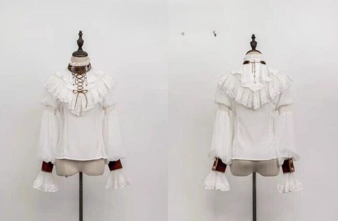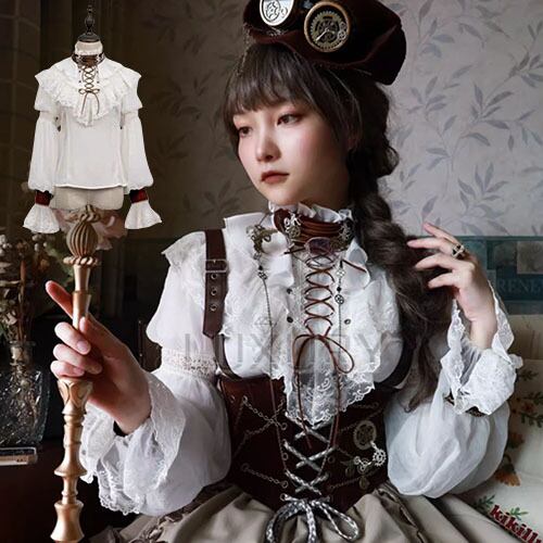 ロリータファッション ブラウス のみ 長袖 立ち襟 ハイネック フリル アンティーク レトロ 古風 ガーリー レディースファッション お茶会 イベント