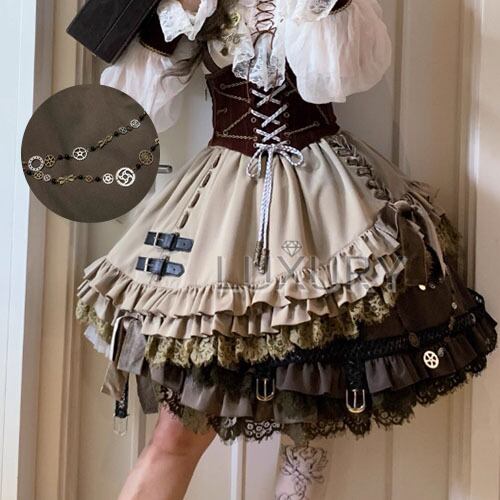 ロリータファッション スカート+装飾チェーン のみ 膝丈 ひざ丈 ミディアム アンティーク レトロ 古風 ガーリー レディースファッション お茶会 イベント