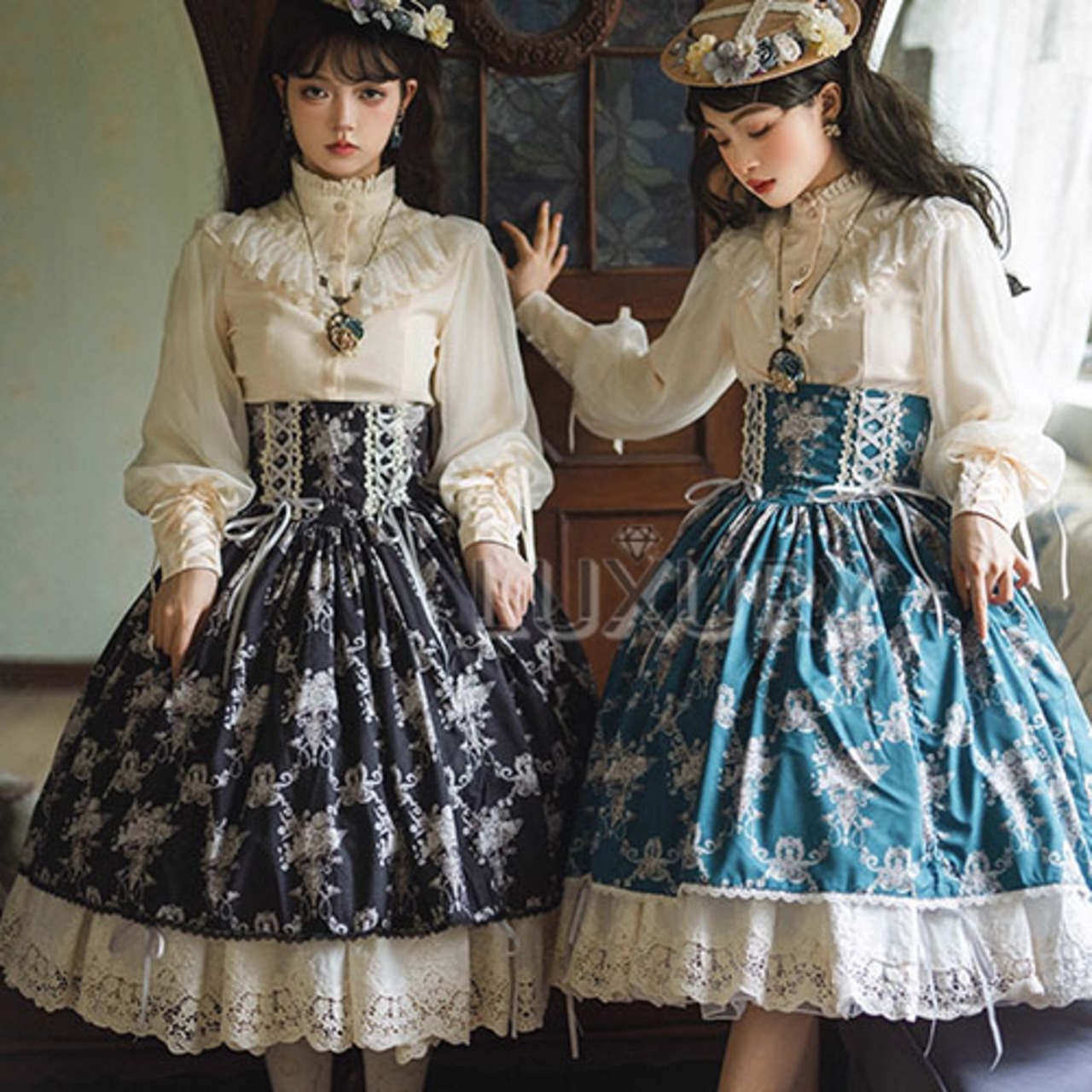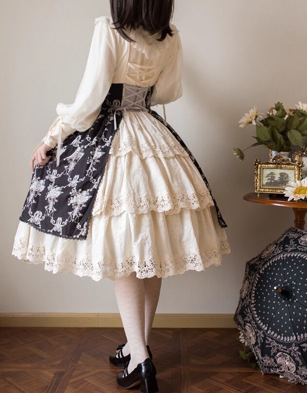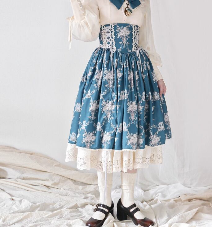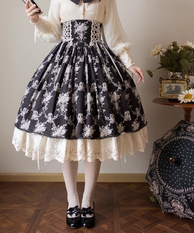 【納期40日】クラシカルロリータ クラロリ スカート のみ コルセット風 膝丈 ひざ丈 ミディアム ヴィンテージ アンティーク レトロ 古風 ガーリー 優雅 春秋コーデ お茶会 撮影用