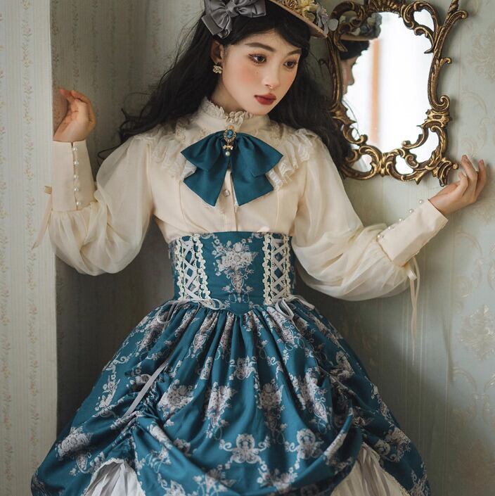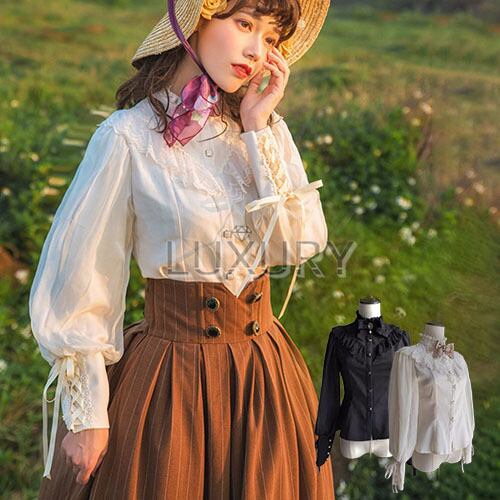 【納期40日】クラシカルロリータ クラロリ ブラウス のみ 長袖 マトン袖 ジゴ袖 ヴィンテージ アンティーク レトロ ガーリー 優雅 春秋コーデ お茶会 撮影