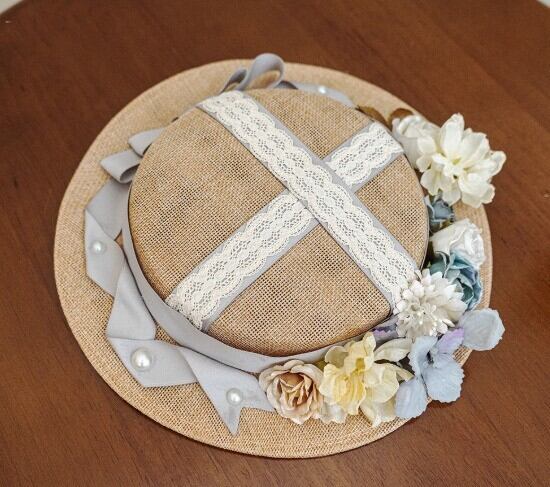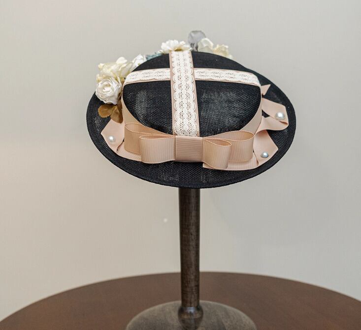 【納期40日】クラシカルロリータ クラロリ ハット のみ リボン付き クラシカルハット フラットハット ヴィンテージ アンティーク レトロ ガーリー 優雅 お茶会 撮影