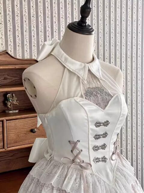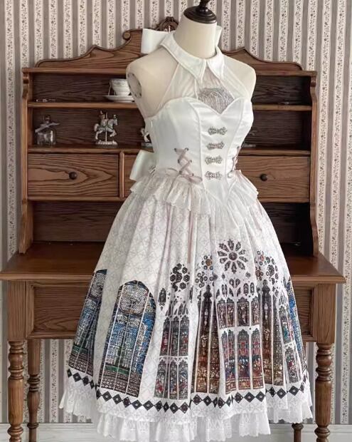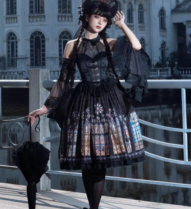 ロリータファッション ゴシック ジャンパースカート のみ 刺繍 膝丈 ひざ丈 ミディアム ホルターネック クラシカル 妖艶 華やか レディースファッション お茶会 撮影