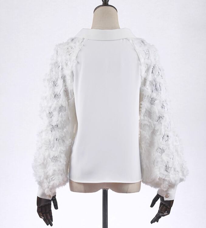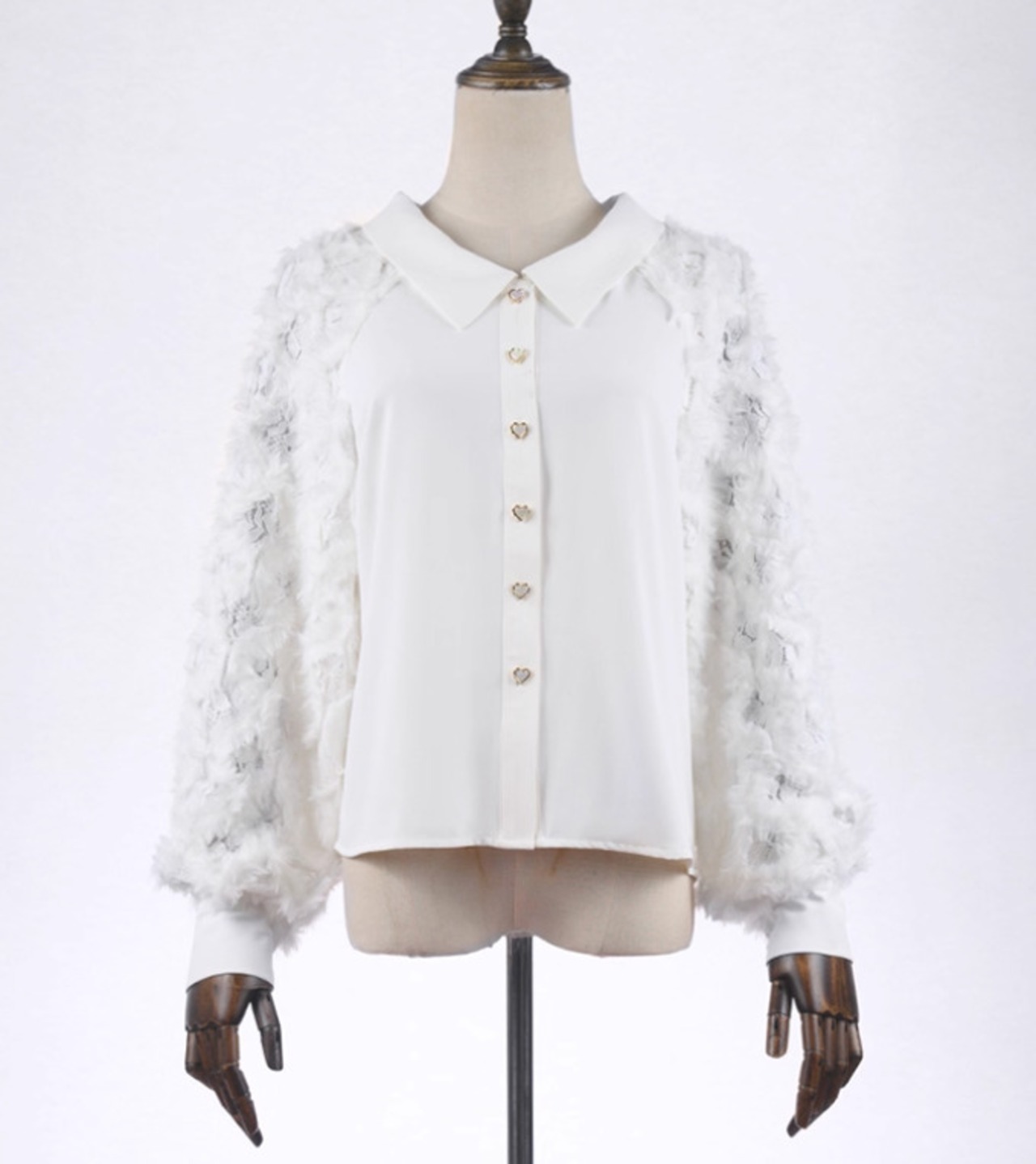 セミロリータ ブラウス のみ 長袖 シフォン 毛羽 羽根 文学少女 フレンチクラシカル お嬢様 ガーリー ナチュラル フェミニン 清楚 春秋コーデ お茶会 普段着 普段使い デイリー デート