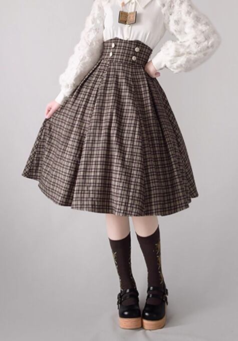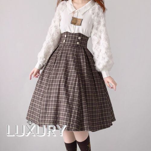 フレンチクラシカルな文学少女スタイルを叶える、チェック柄のセミロリータスカートです!