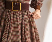 チェック柄×フレアシルエットがレトロで上品な印象を与え、文学少女のようなクラシカルな雰囲気を漂わせます。
