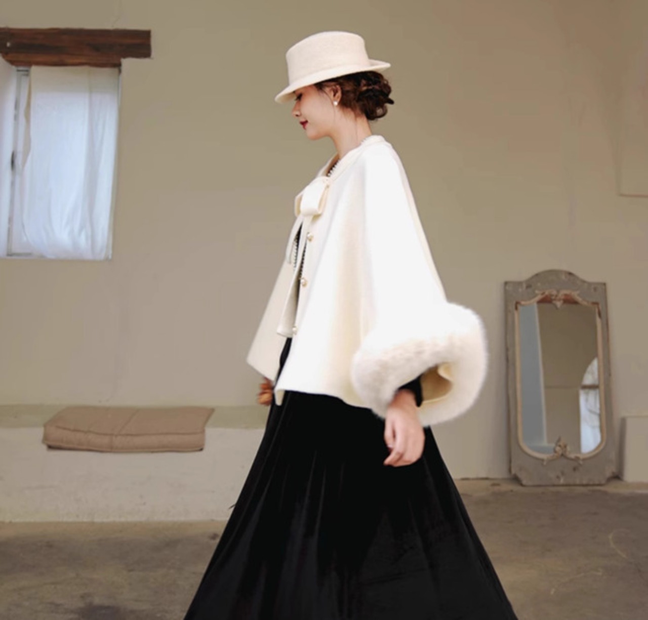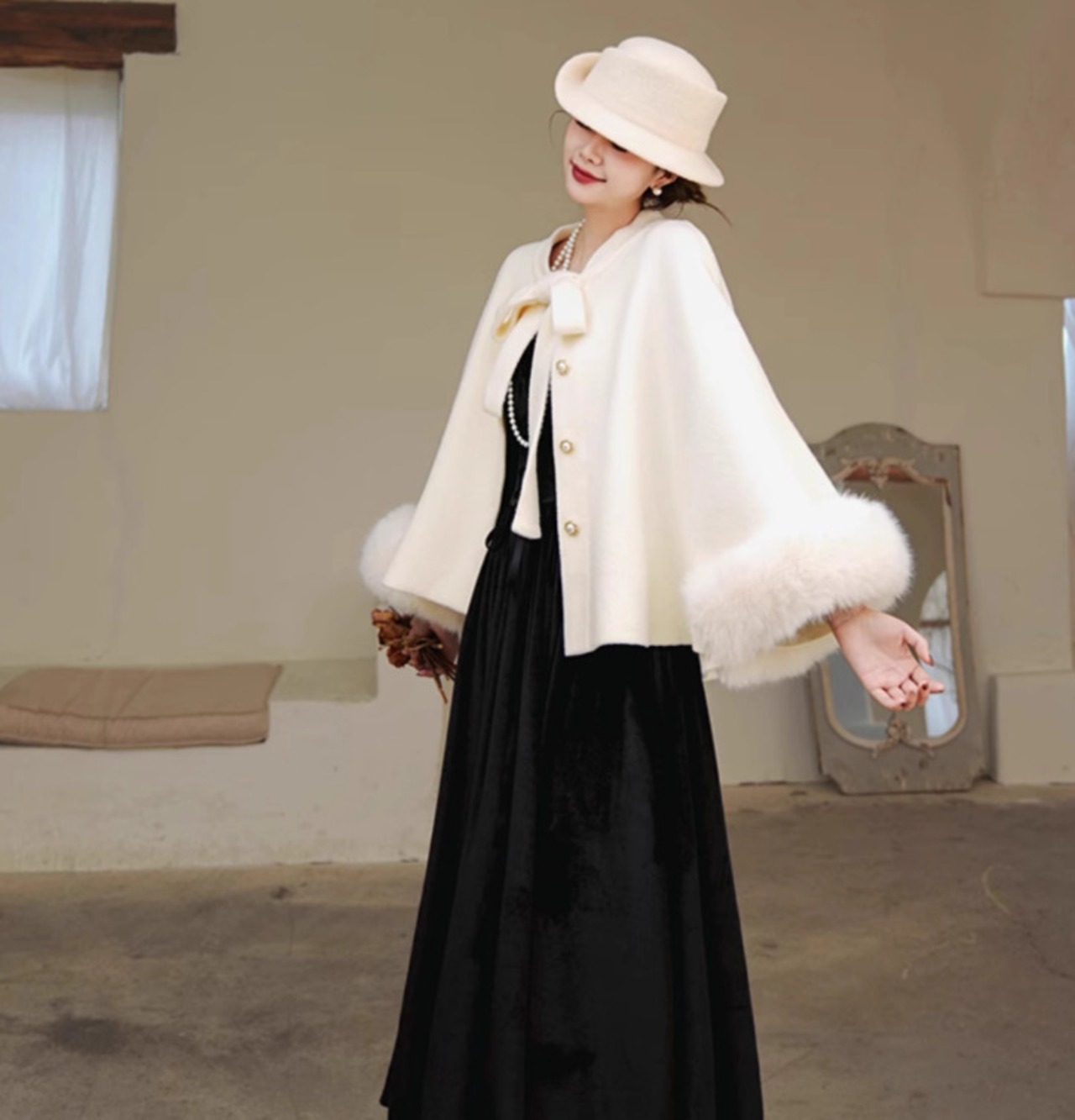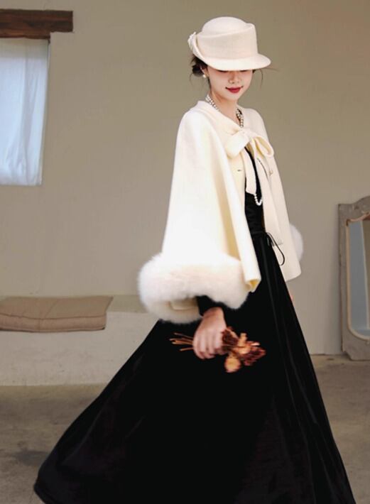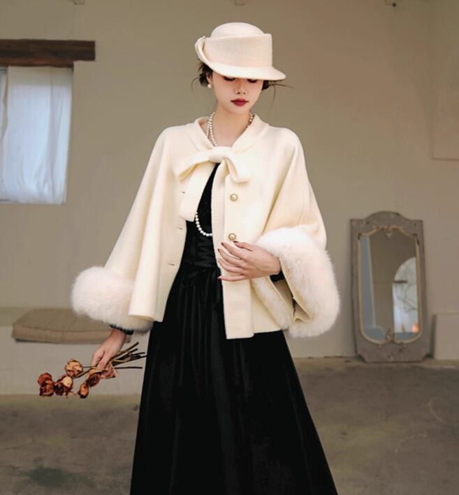 特別な日だけでなく、デイリーコーデにも活躍し、クラシカルなテイストで冬の装いを華やかに演出します。