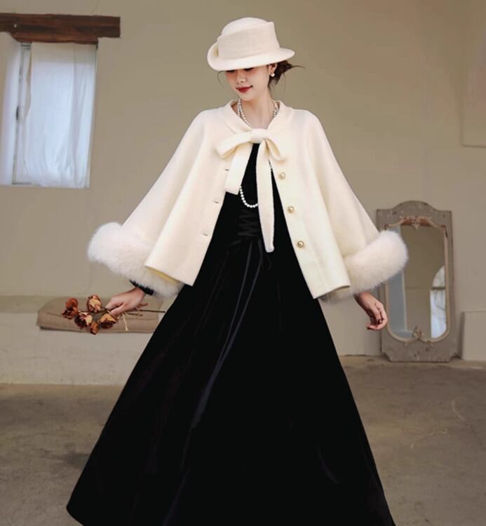 セミロリータ ケープコート のみ ウール フレンチクラシカル お嬢様 清楚 ガーリー フェミニン 大人可愛い お茶会 冬コーデ あったか 暖かい デート デイリー