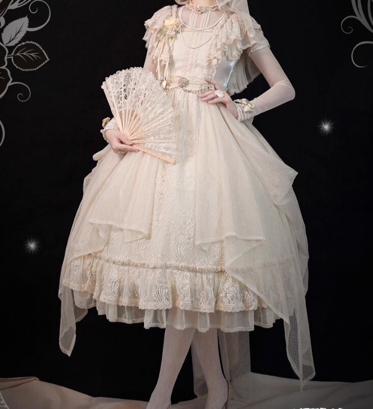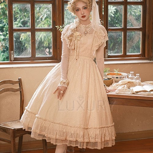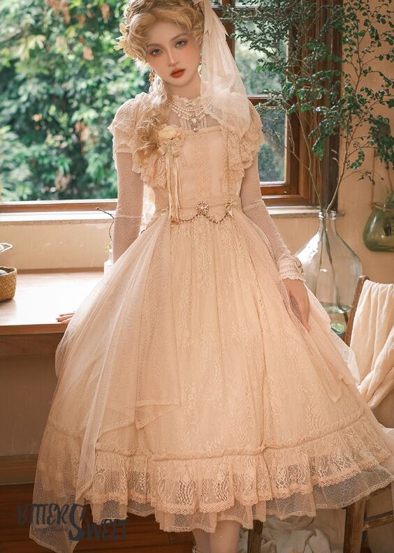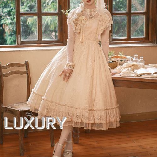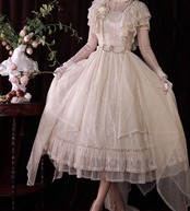 クラシカルロリータ クラロリ ワンピース のみ 膝丈 ひざ丈 ミディアム 半袖 総レース フレンチクラシカル レトロ 古風 スウィート ガーリー 夏コーデ お茶会 イベント