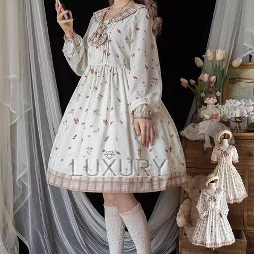 【納期40日】クラシカルロリータ クラロリ ワンピース のみ 長袖 半袖 ひざ下丈 ミモレ丈 セーラーカラー レトロ 古風 かわいい ガーリー レディースファッション お散歩