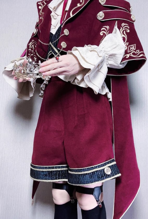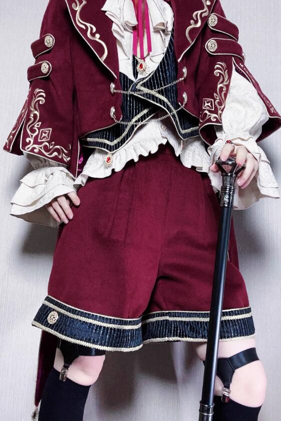 クラシカルロリータ クラロリ 男装 皇子 アウター+シャツ+ショートパンツ 3点セット 軍風 プリンス 優雅 幻想的 ゴージャス お茶会 秋冬コーデ イベント 撮影 舞台 撮影用