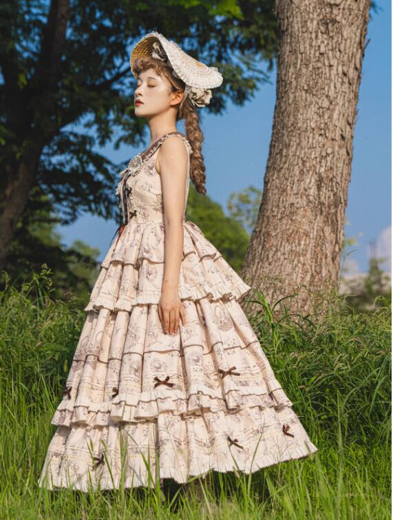 クラシカルロリータ クラロリ ワンピース ノースリーブ ロング丈 お嬢様 ガーリー ナチュラル フェミニン 上品 お茶会 春秋コーデ 森 ピクニック デイリー