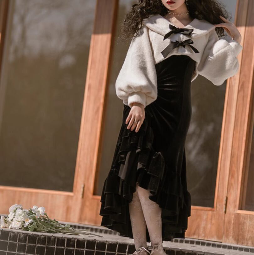 セミロリータ ジャンパースカート + ボレロ 2点セット 2色 アシンメトリー お嬢様 大人可愛い セクシー 妖艶 エレガント 秋冬コーデ イベント お呼ばれ パーティー デート