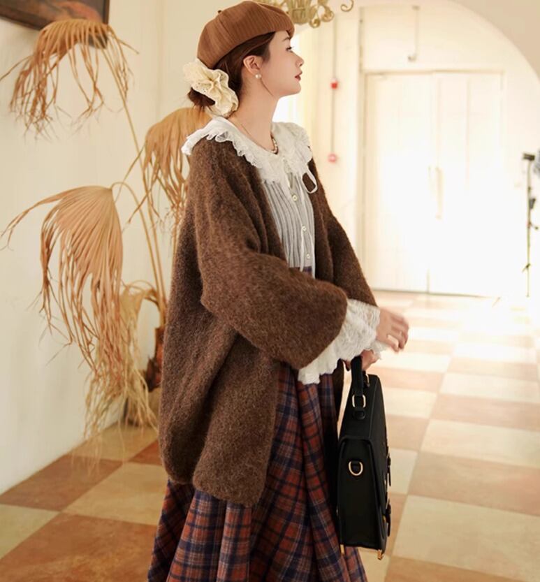 セミロリータ ニットカーディガン のみ ゆったり 楽ちん ランタン袖 レトロ 古風 学院風 アンティーク フレンチクラシカル 大人可愛い 上品 秋冬コーデ お茶会 デート デイリー
