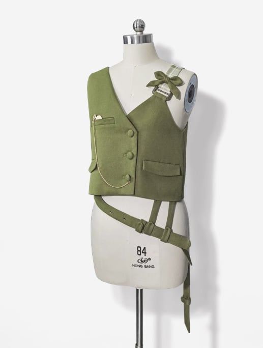 こちらのベストは、エレガントな英国スタイルと童話風デザインを融合させた、一味違った魅力を持っています。