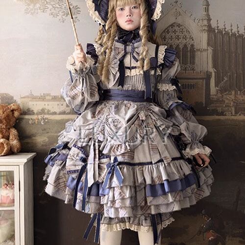 クラシカルロリータ クラロリ ワンピース+付け衿+付け袖 パフスリーブ フリル ミニ丈 ショート丈 膝上 リボンタイ付き ゆったり レトロ 古風 ガーリー レディースファッション 撮影