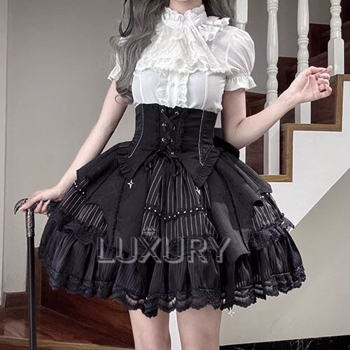 ゴスロリファッション ゴスロリ スカート + コルセット風ウエストベルト 2点セット ミニ丈 ショート丈 膝上 パンク 妖艶 セクシー レディースファッション イベント