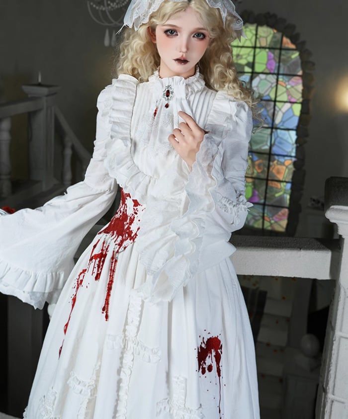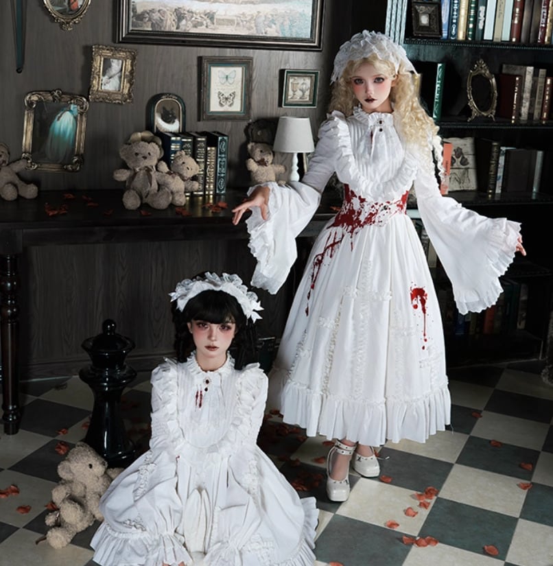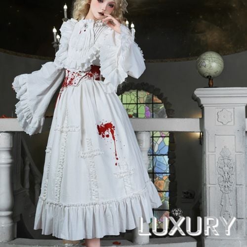 修道女や神話をイメージしたデザインが施されたワンピースは、特別なイベントや撮影でも存在感を引き立てます。
