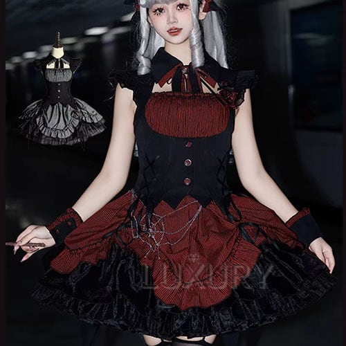 【納期4月下旬】ゴスロリファッション ゴスロリ ノースリーブ ワンピース のみ 2色 ミニ丈 ショート丈 膝上 魔法使い 妖艶 ハロウィン クラシック レディース イベント