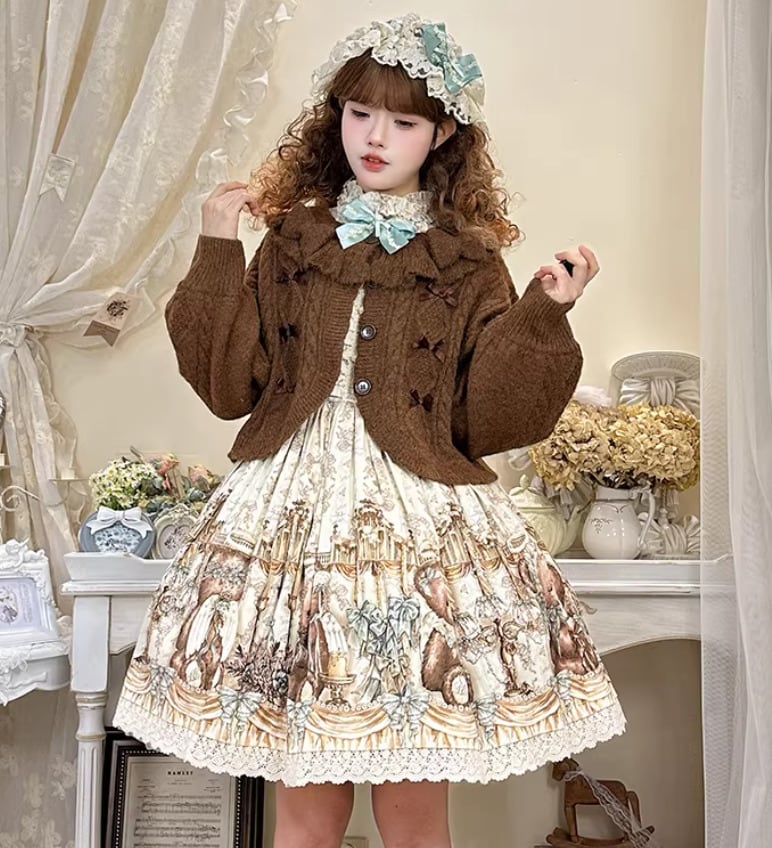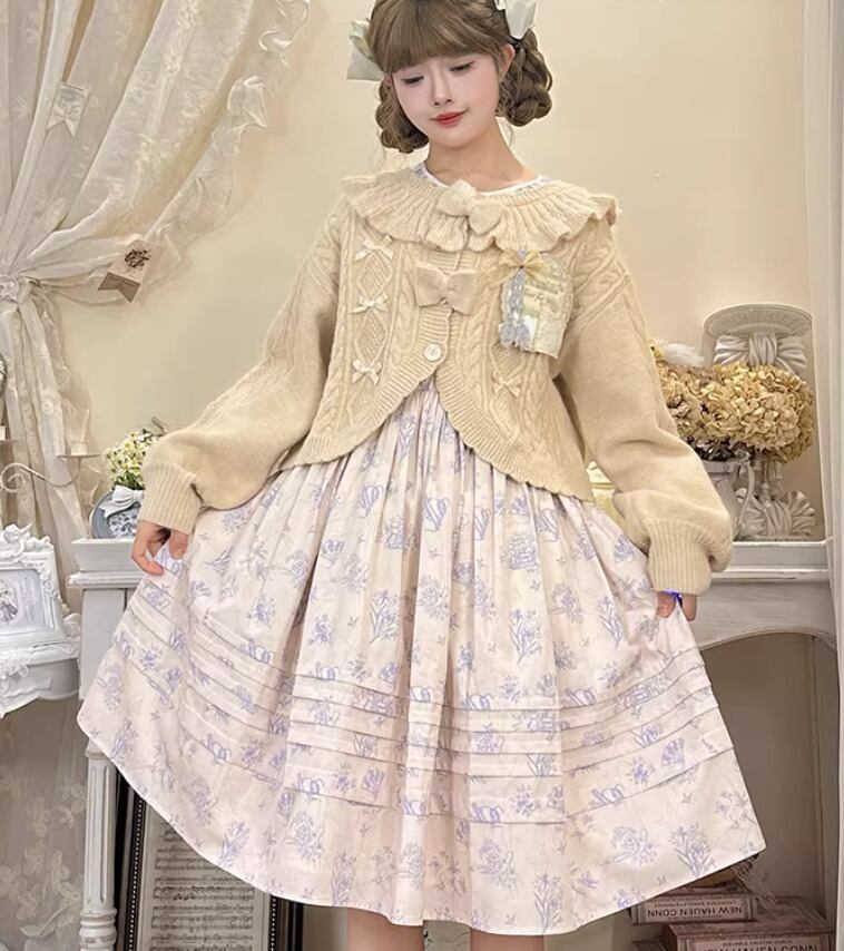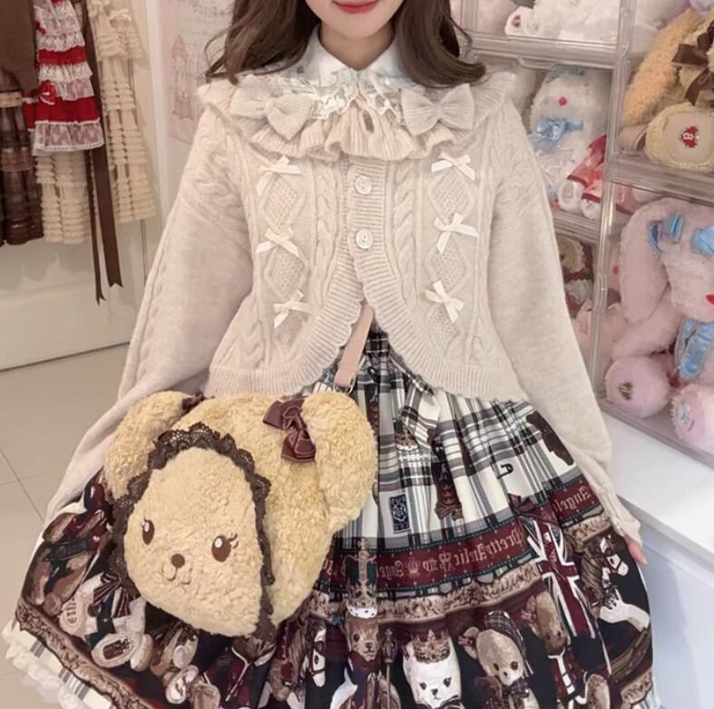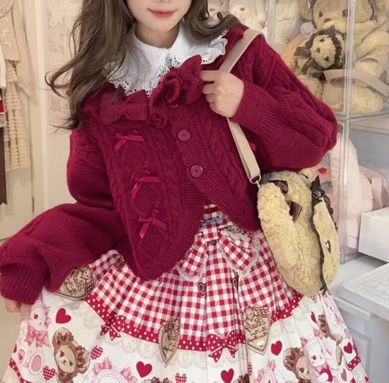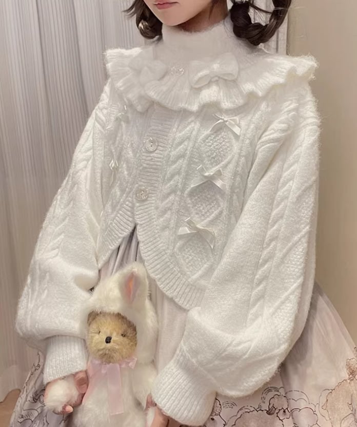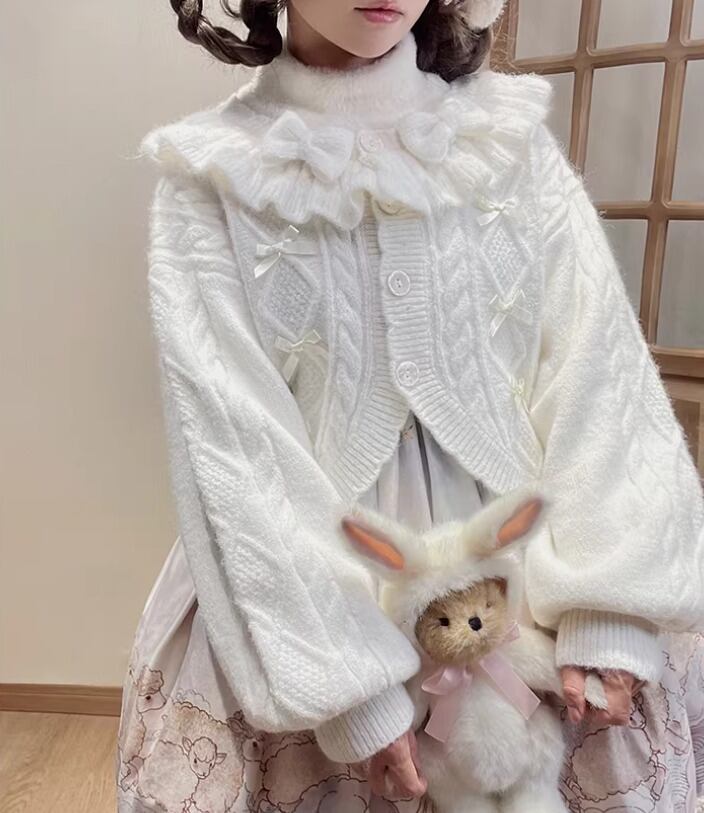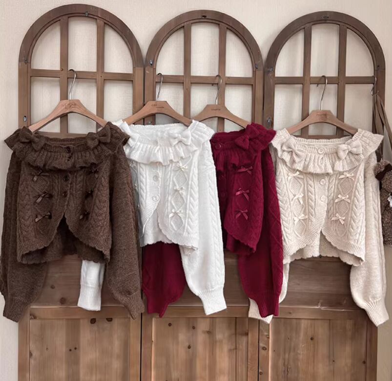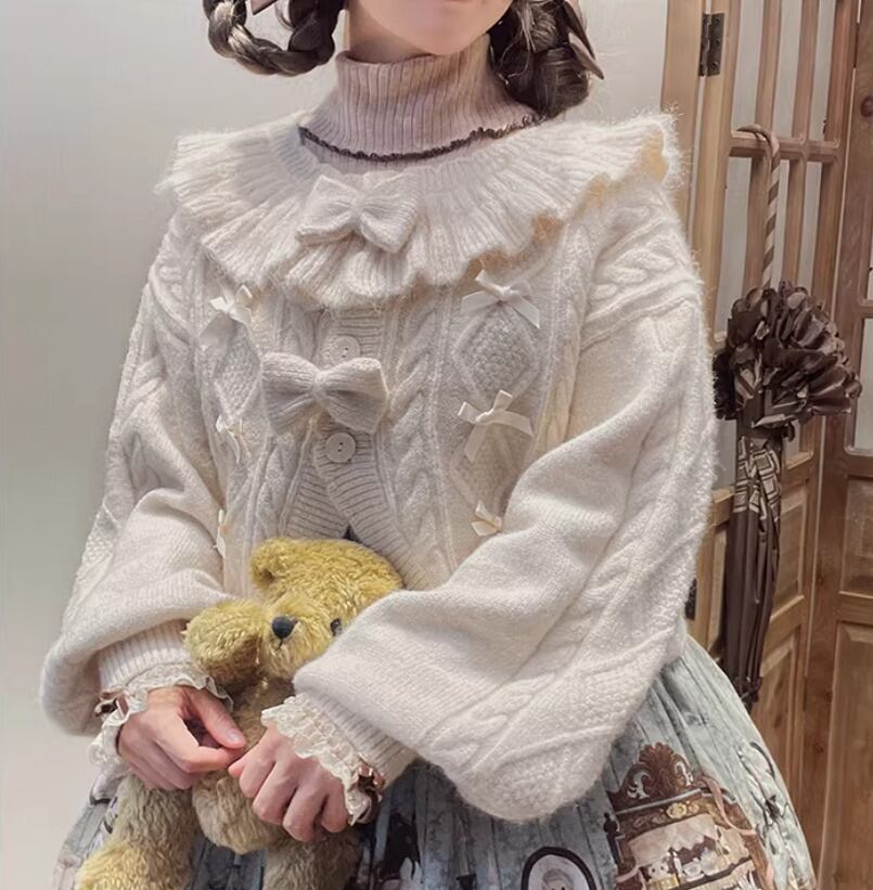 ロリータファッション 甘ロリ ニットカーディガン のみ 4色 リボン お嬢様 ガーリー スウィート 冬 冬物 冬コーデ 冬服 普段着 普段使い デイリー お茶会 クリスマス