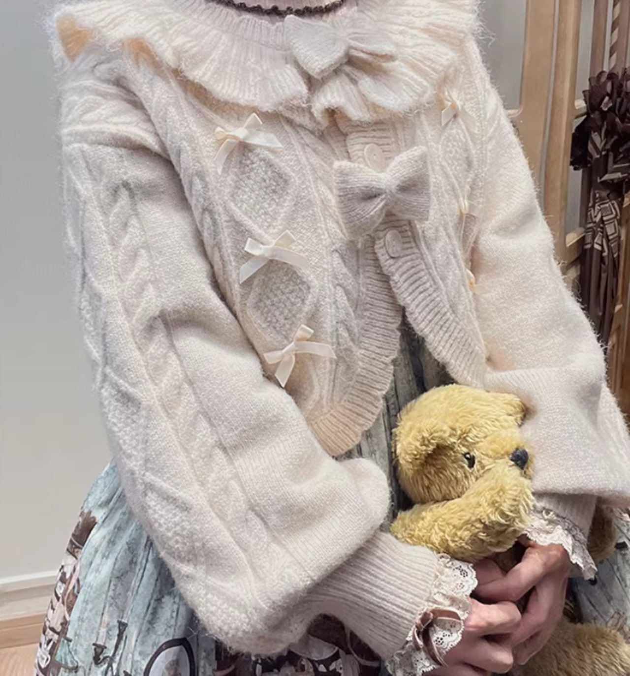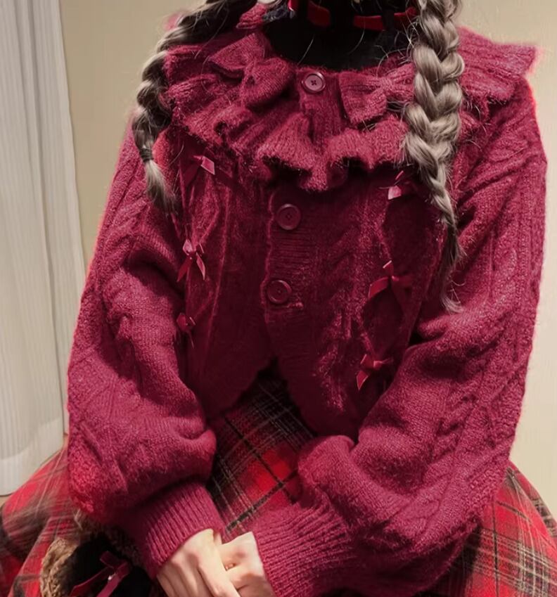 この可愛らしいニットカーディガンをぜひあなたの冬のスタイルに取り入れて、素敵な瞬間を楽しんでください!