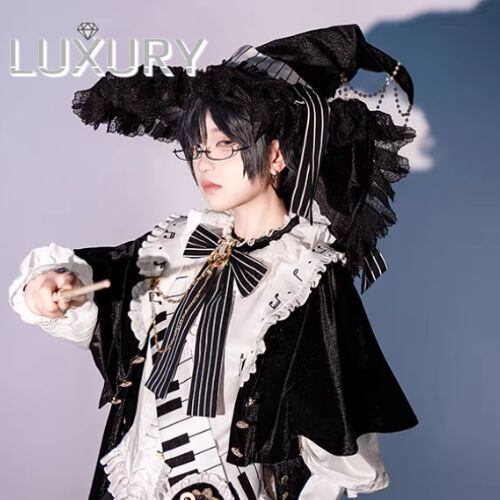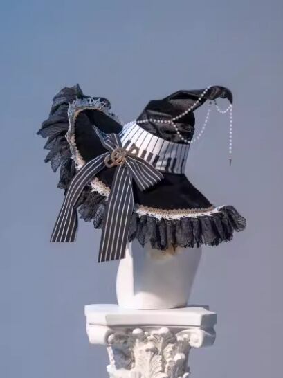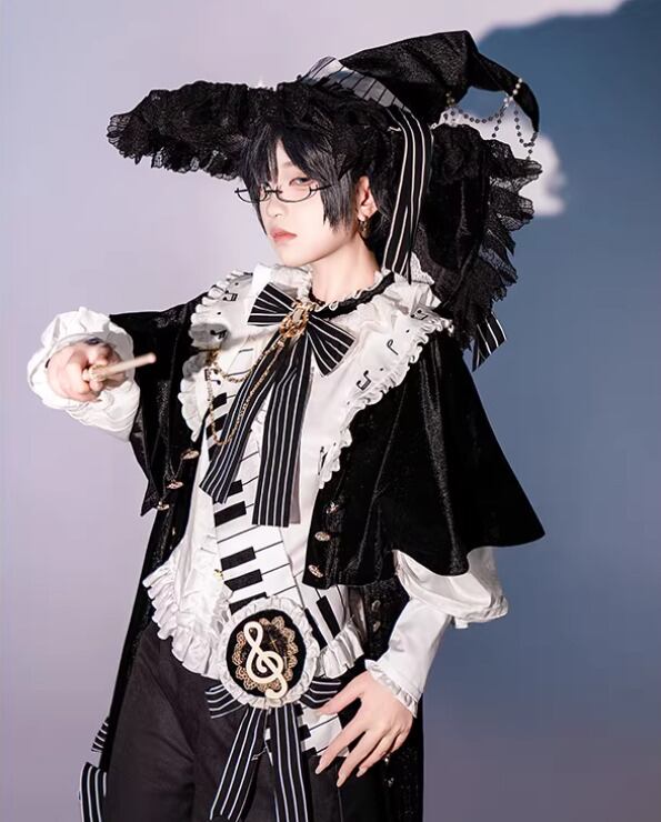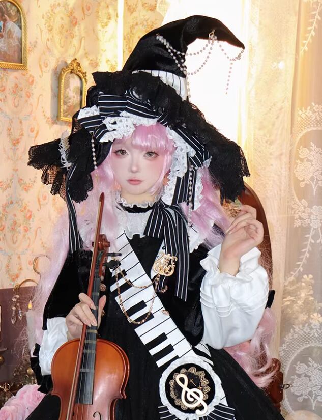 男装 皇子 帽子 ハット のみ 音符 ピアノ リボン ロリータ モノトーン ゴシック パンク 魔法使い ユニセックス クール ゴージャス 撮影 舞台 撮影用 イベント