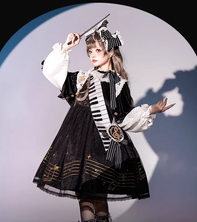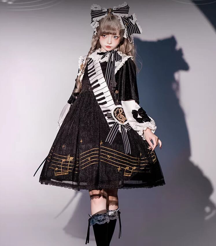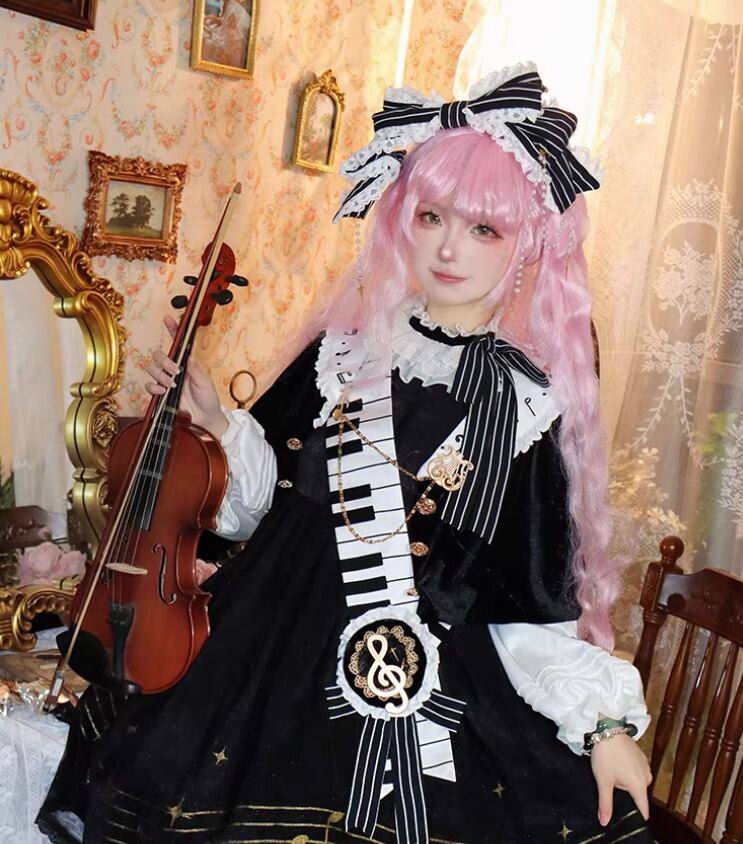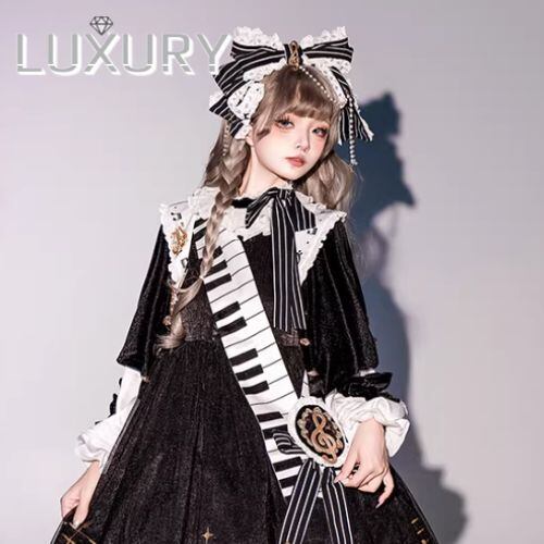 ロリータファッション カチューシャ のみ ヘアアクセサリー 音符 リボン モノトーン ゴシック パンク 魔法使い かわいい クラシカル ガーリー 撮影 舞台 撮影用 イベント