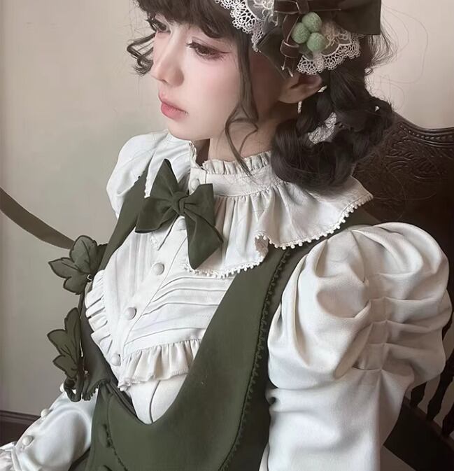 クラシカルロリータ クラロリ ブラウス のみ リボン付き 立ち襟 ハイネック 長袖 レトロ 古風 宮廷風 ナチュラル ガーリー 春秋コーデ デート お呼ばれ パーティー お茶会