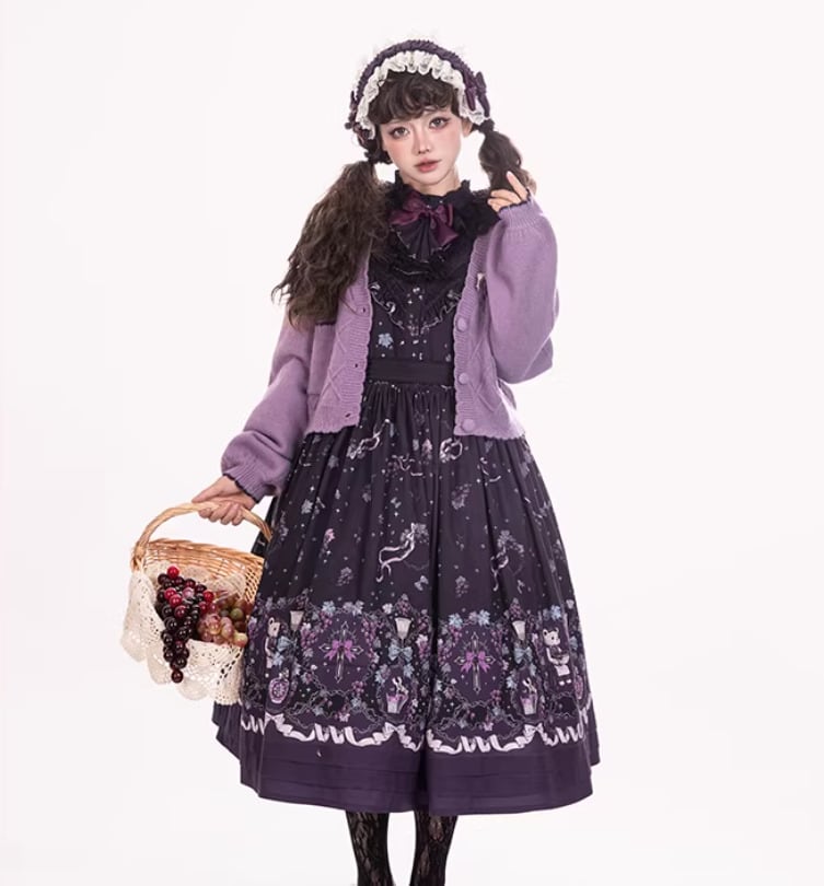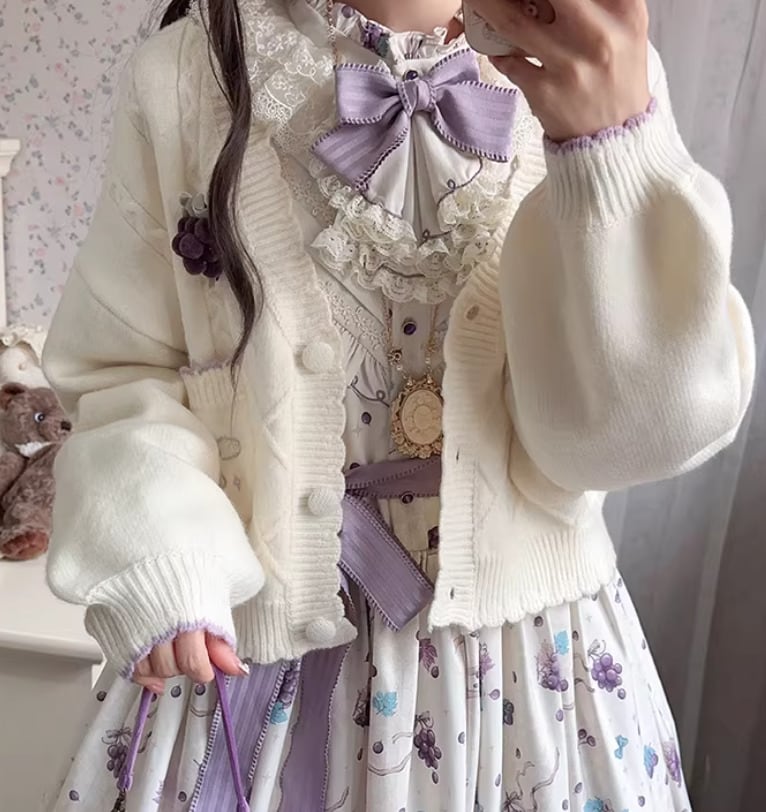 クラシカルロリータ クラロリ カーディガン のみ 4色 ぶどうモチーフ ニット レトロ 古風 宮廷風 ナチュラル かわいい 森ガール ガーリー 秋冬コーデ デート デイリー