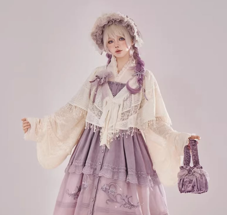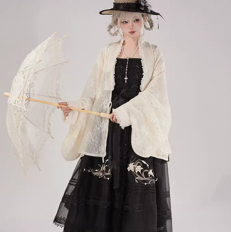 華ロリ 中華ロリ トップス ケープ のみ ユリ 花柄 お花 刺繍 琵琶袖 中国風 チャイナ アンティーク アジアン 優雅 華やか レディースファッション お茶会 お呼ばれ パーティー