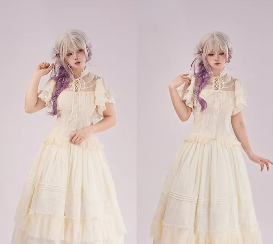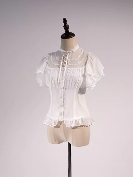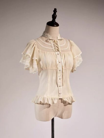 華ロリ 中華ロリ シャツ ショートトップス のみ 3色 袖フリル フリル袖 半袖 中国風 チャイナ アンティーク アジアン 優雅 華やか レディースファッション お茶会 パーティー