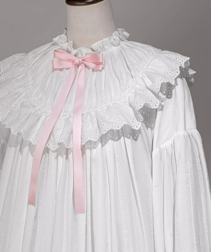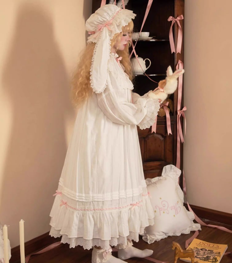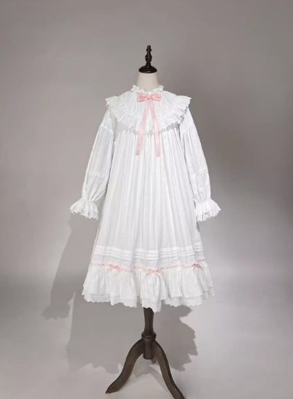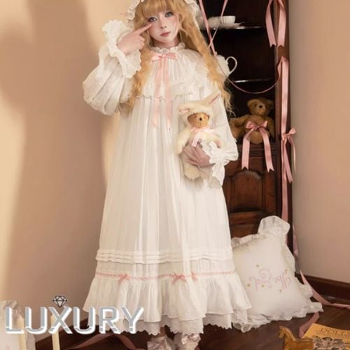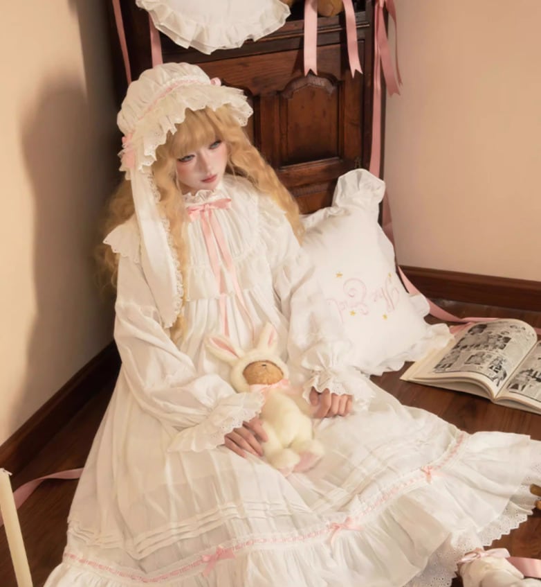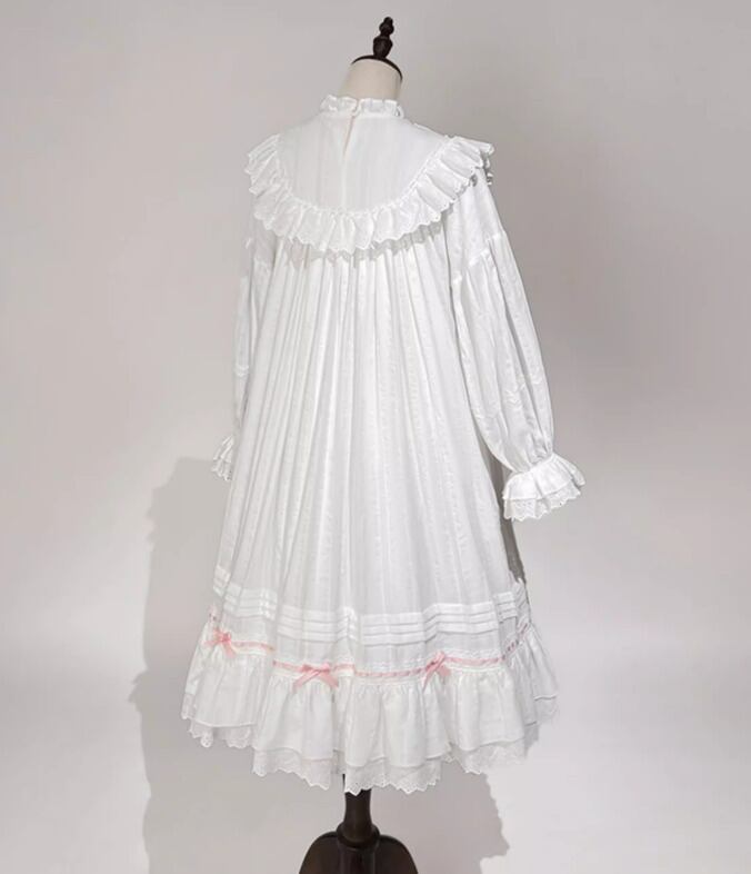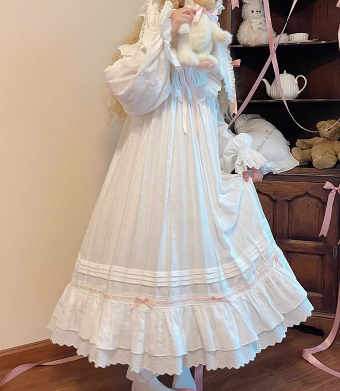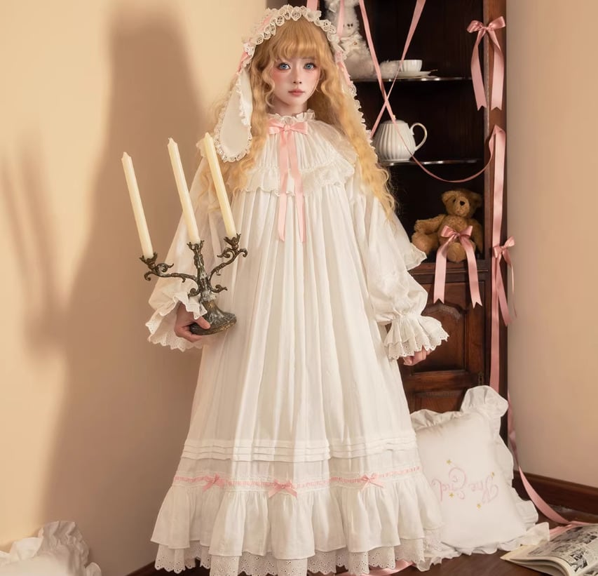 甘ロリ ロリータファッション ワンピース ナイトウェア ルームウェア のみ フリル リボン 長袖 マキシ丈 お嬢様 レトロ 古風 ドール風 ガーリー レディースファッション デイリー