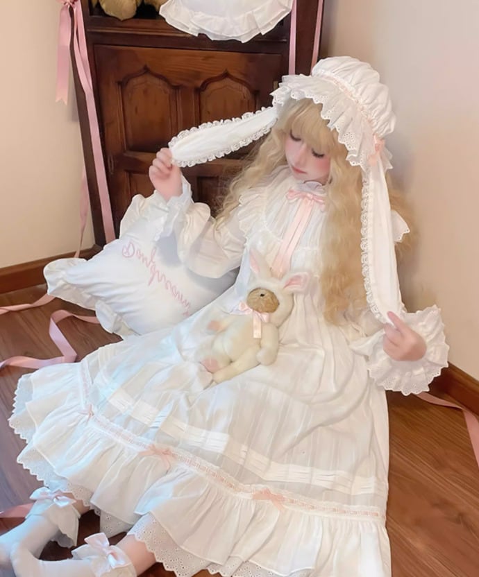 長袖でマキシ丈のお嬢様スタイルは、レトロで古風な雰囲気を醸し出し、ドール風の印象を与えます。