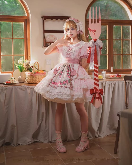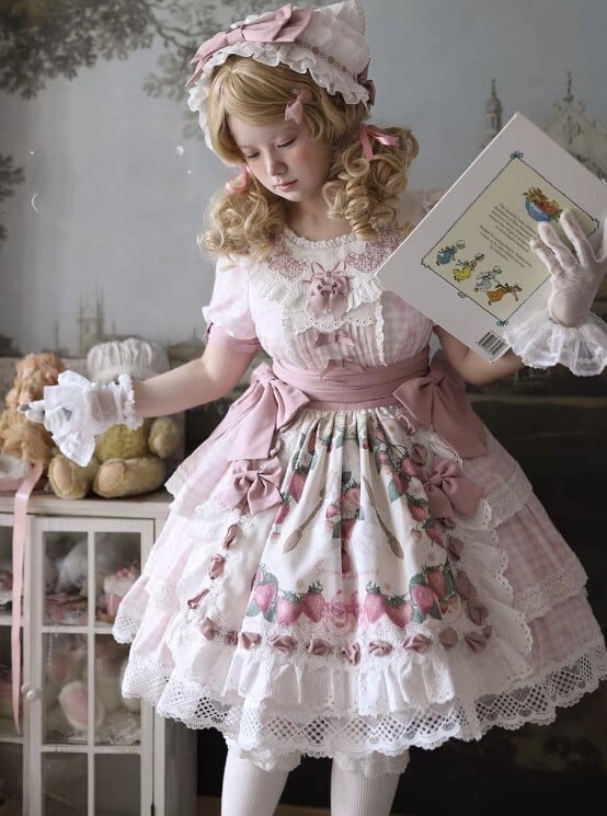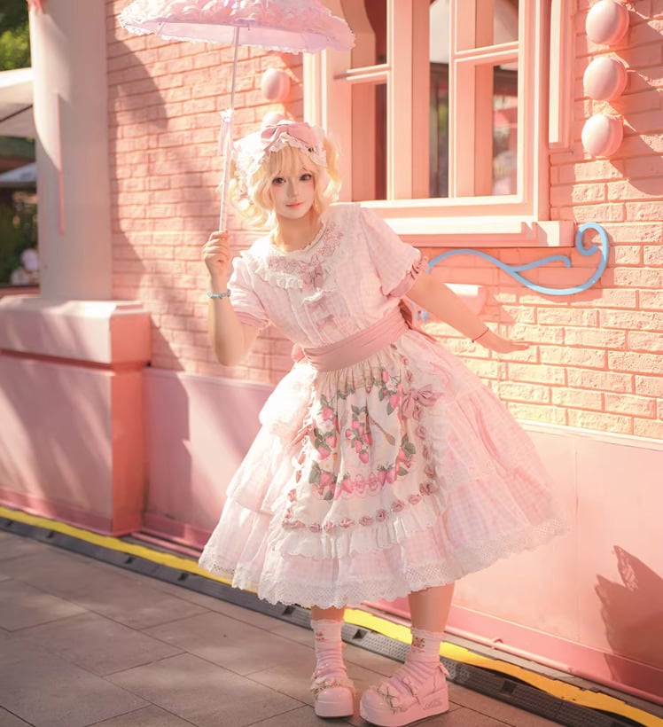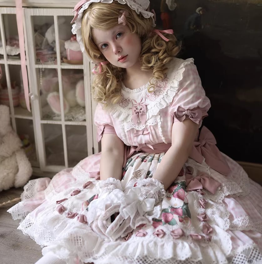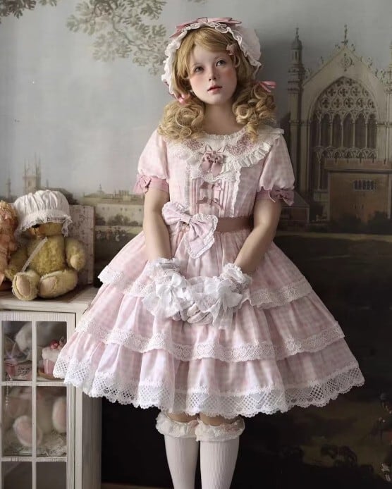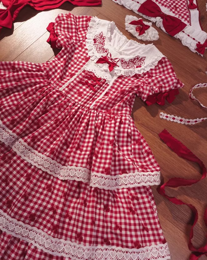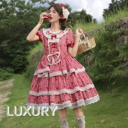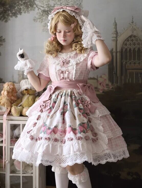 ロリータファッション ワンピース のみ 2色 ギンガムチェック 半袖 レトロ 古風 田園風 森ガール 優雅 クラシック 夏 夏物 夏コーデ 夏服 森 ピクニック 田園 お散歩