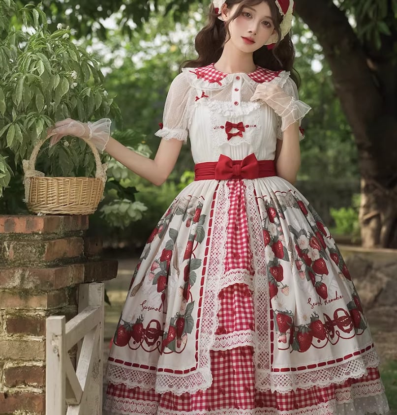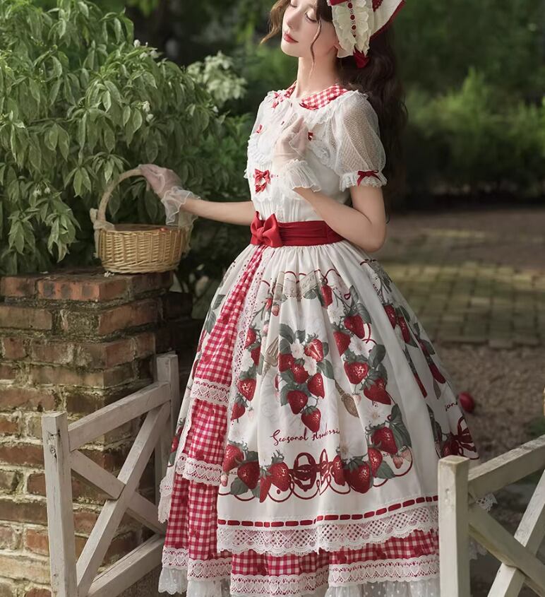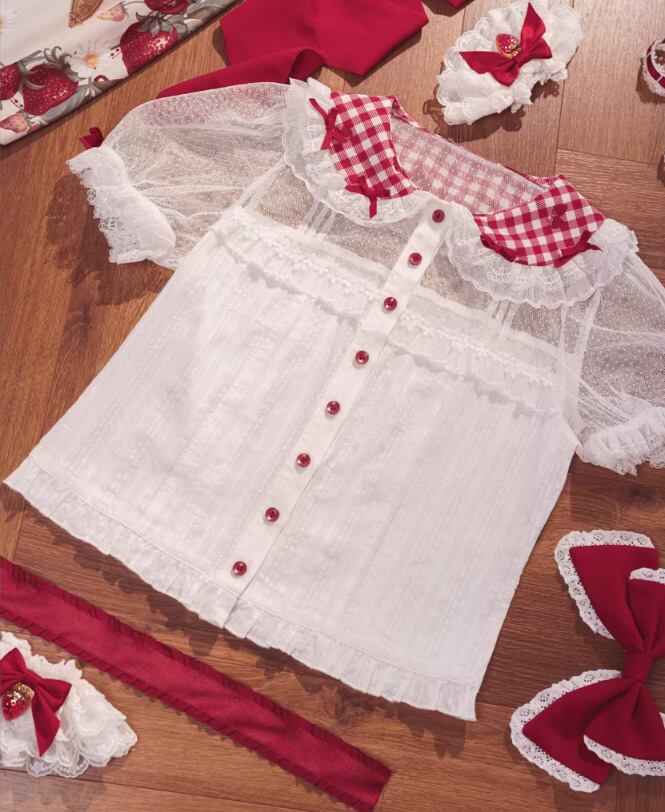 ロリータファッション ブラウス のみ 2色 チェック柄 半袖 レトロ 古風 田園風 森ガール かわいい ガーリー 優雅 レディース ピクニック 田園 お散歩