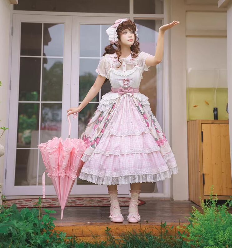 ロリータファッション ブラウス のみ 2色 チェック柄 半袖 レトロ 古風 田園風 森ガール かわいい ガーリー 優雅 森 レディース ピクニック 田園 お散歩