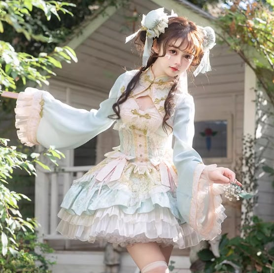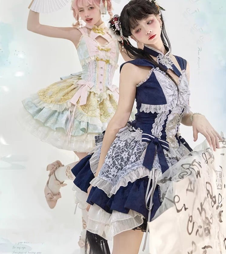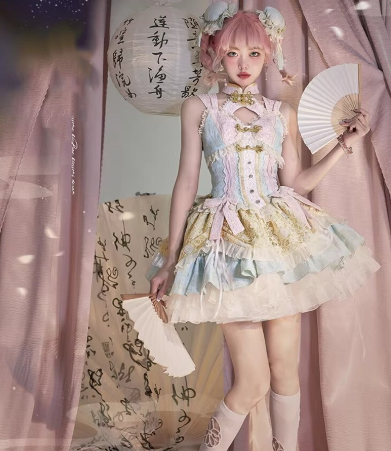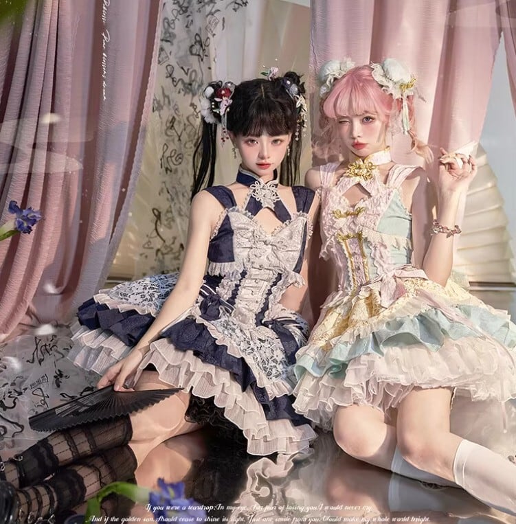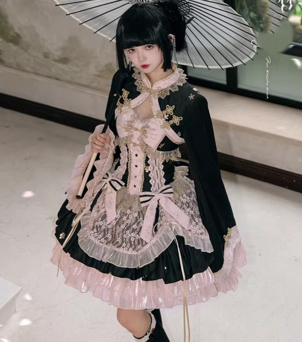 華ロリ 中華ロリ ジャンパースカート + ケープ のみ 4色 フリル ミニ丈 ショート丈 膝上 立ち襟 ハイネック 中国風 チャイナ アジアン セクシー レディース 撮影 舞台 撮影用