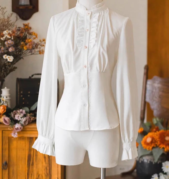 クラシカルロリータ クラロリ ブラウス のみ 長袖 立ち襟 ハイネック フレンチクラシカル レトロ フェミニン 上品 レディース 春夏コーデ デイリー お茶会