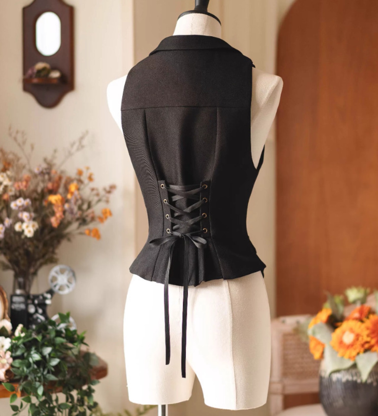 このベストは、フレンチクラシカルなデザインが特徴で、