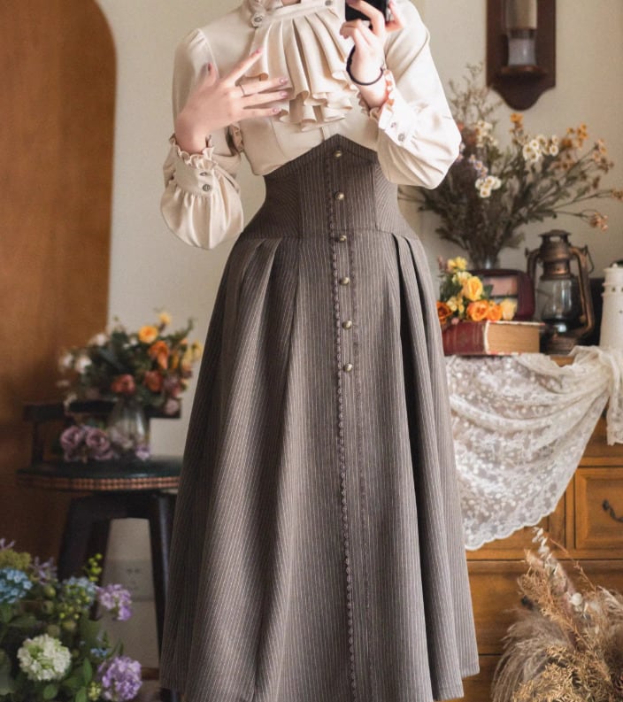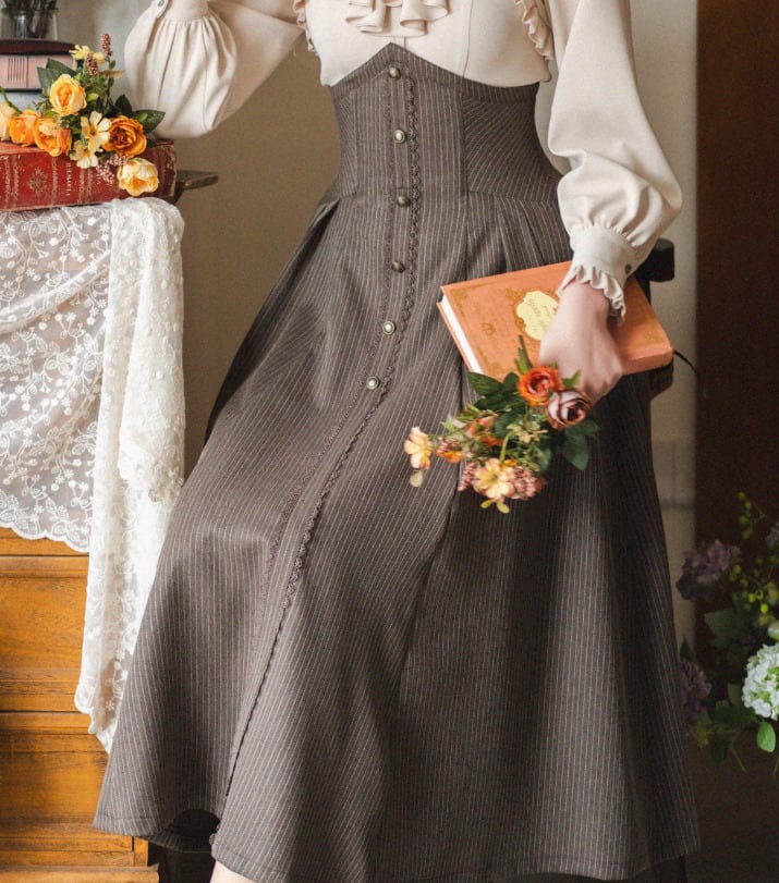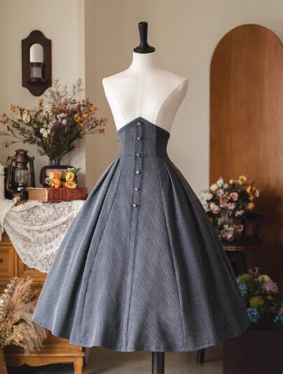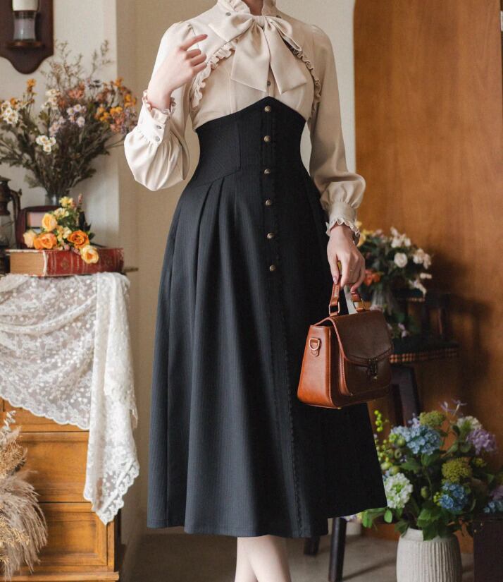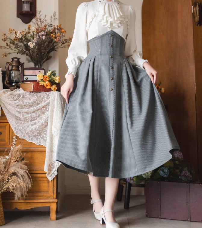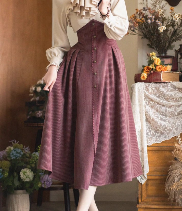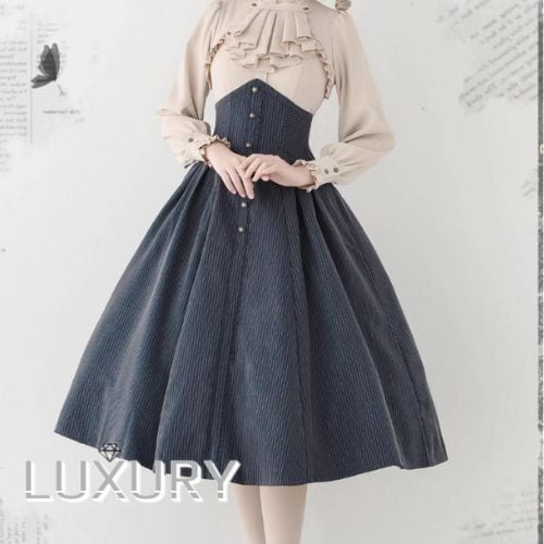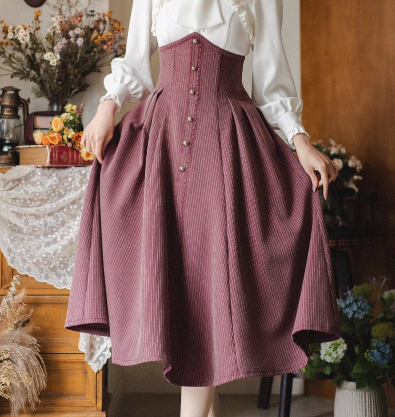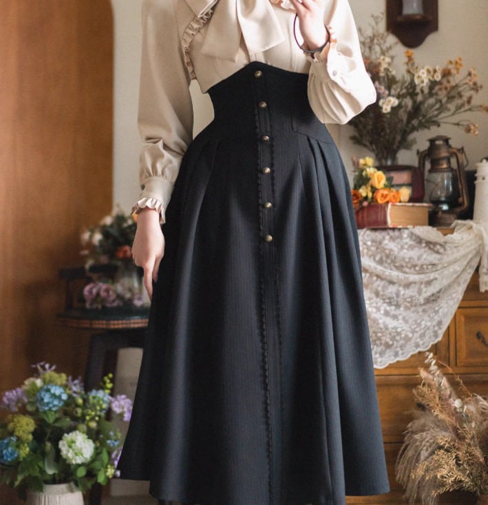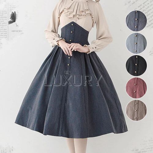 クラシカルロリータ クラロリ スカート のみ 5色 ハイウエスト コルセット風 ひざ下丈 ミモレ丈 レトロ フレンチクラシカル エレガント 上品 レディース お茶会