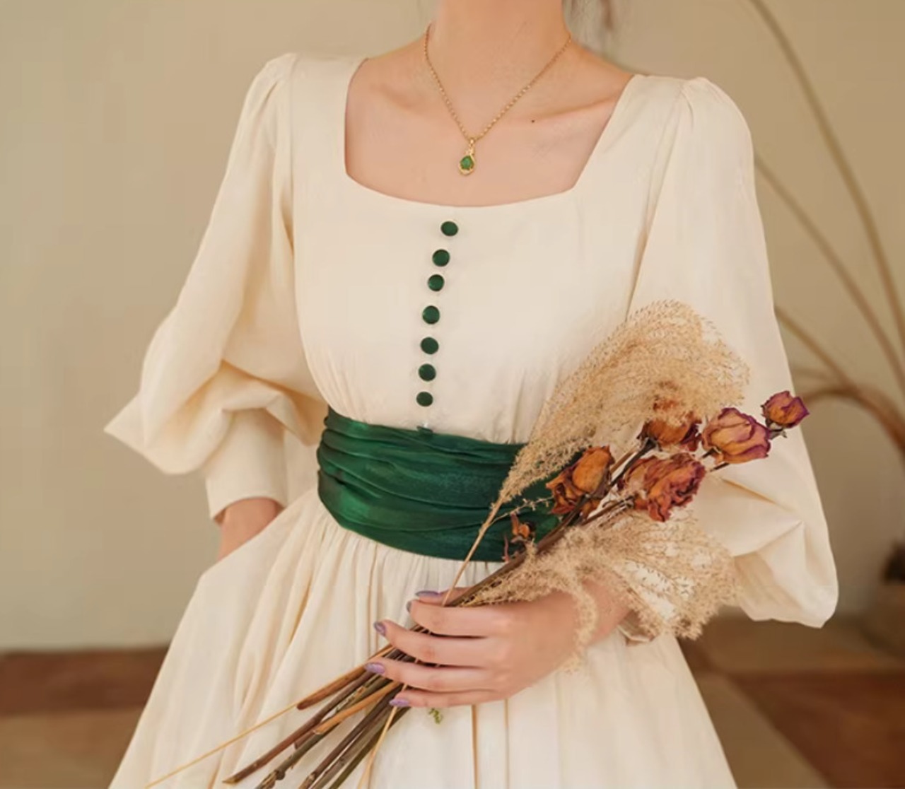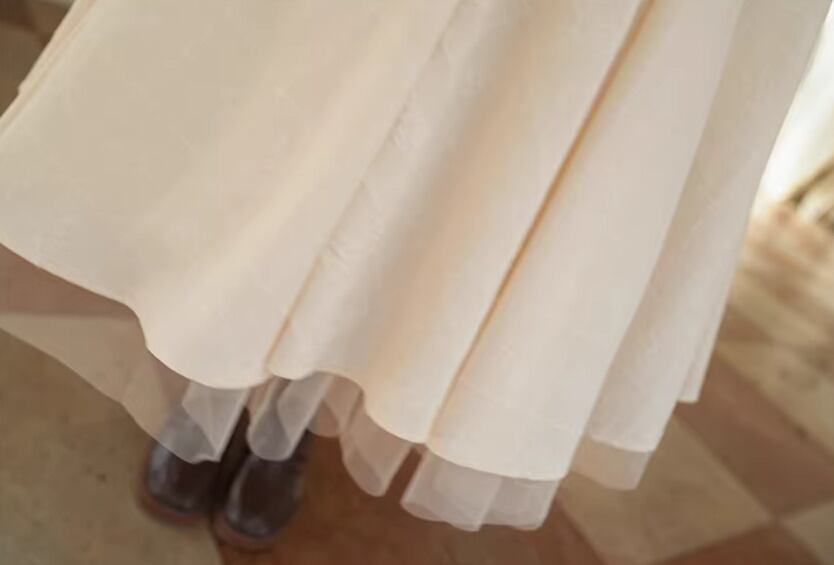 長袖とひざ下丈、ミモレ丈のシルエットは、