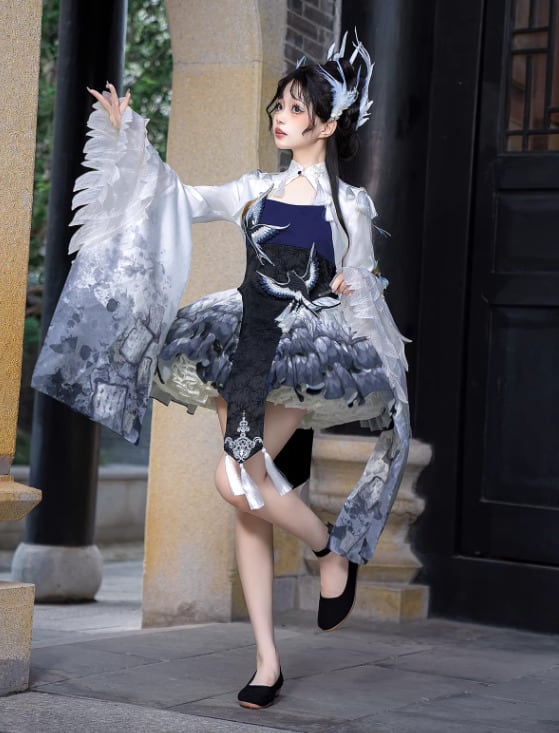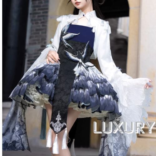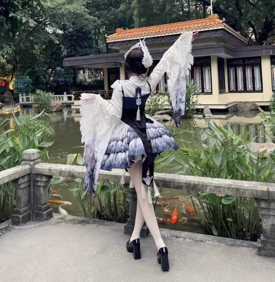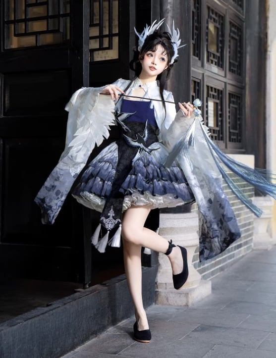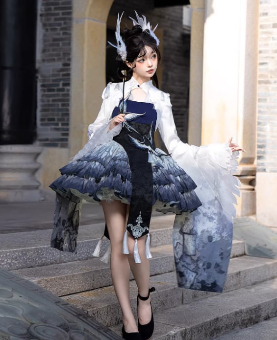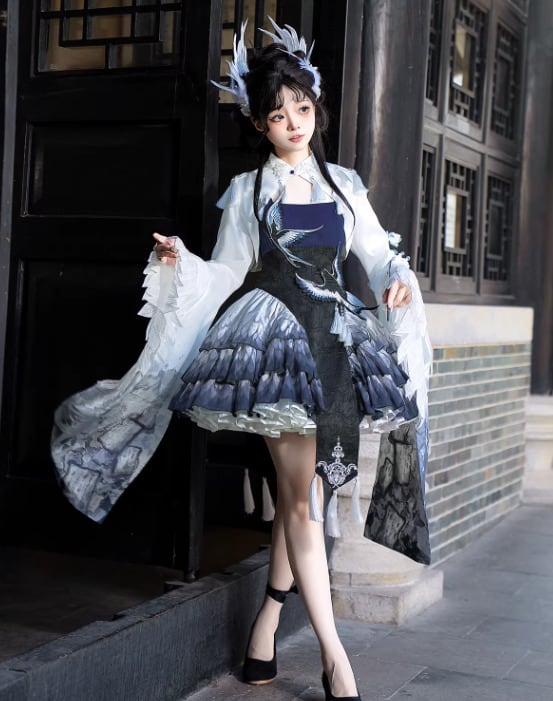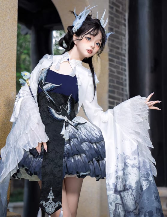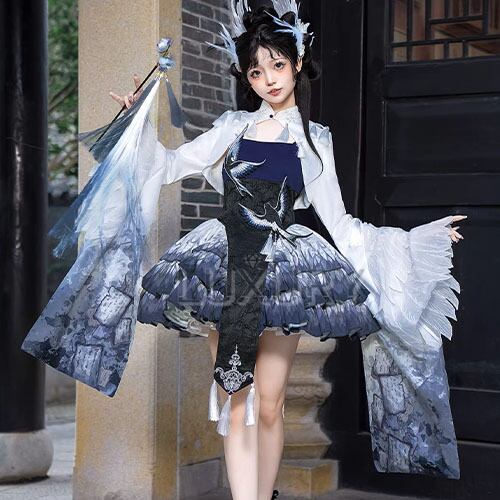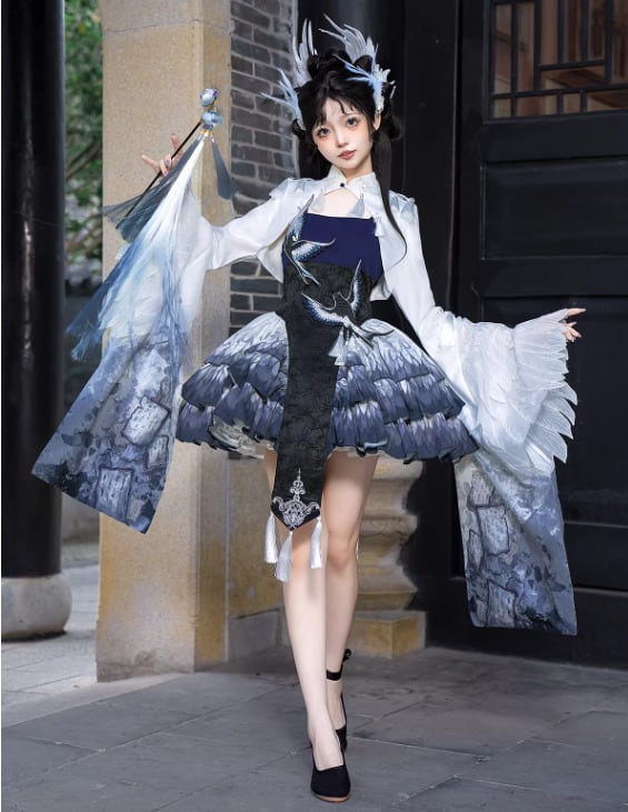 華ロリ 中華ロリ キャミワンピ + トップス 2点セット 羽根 フェザー ミニ丈 ショート丈 膝上 中国風 チャイナ 神話 妖艶 幻想的 レディースファッション イベント