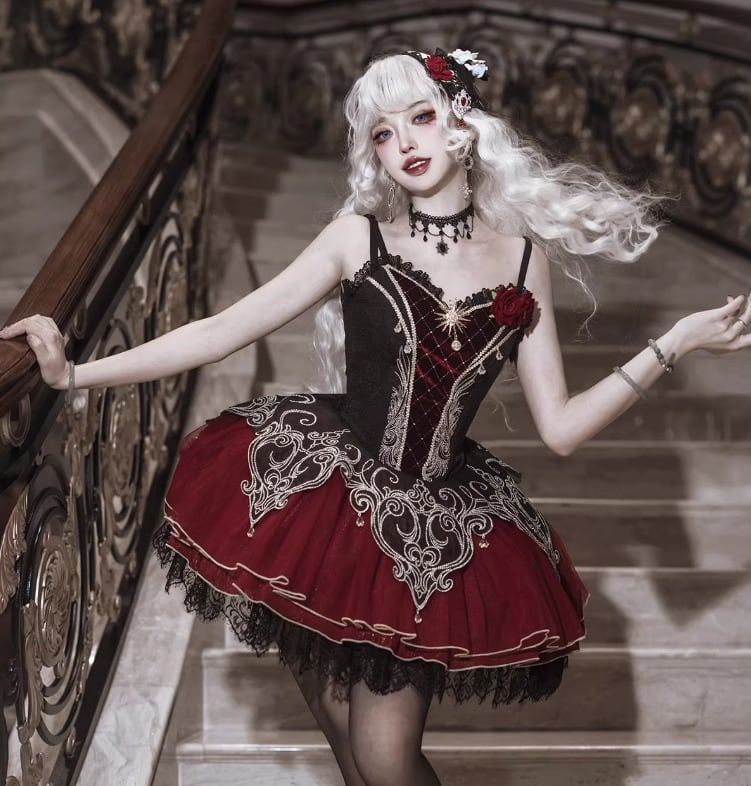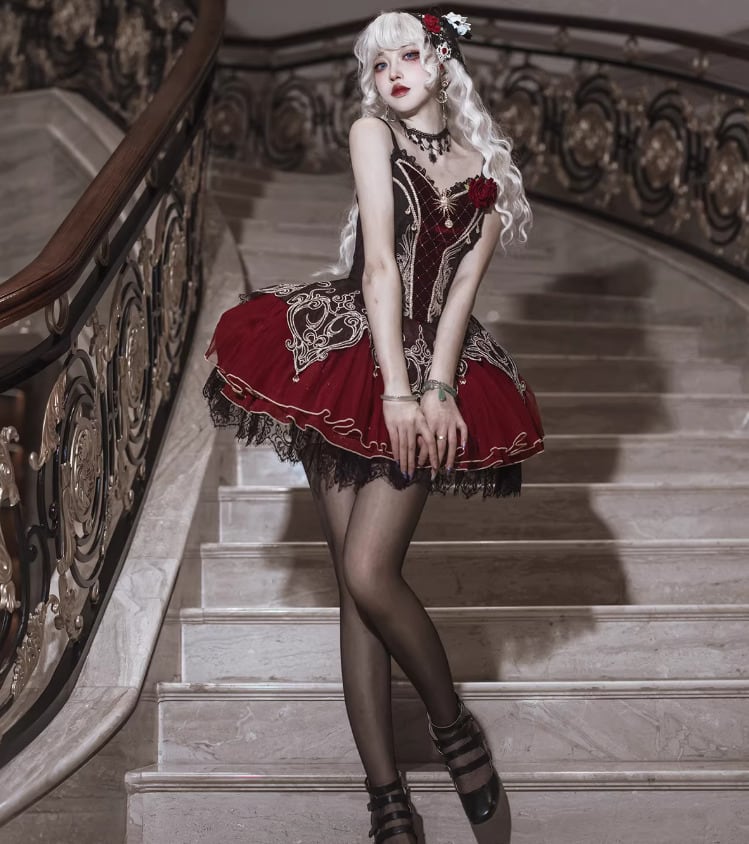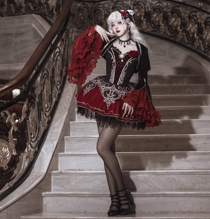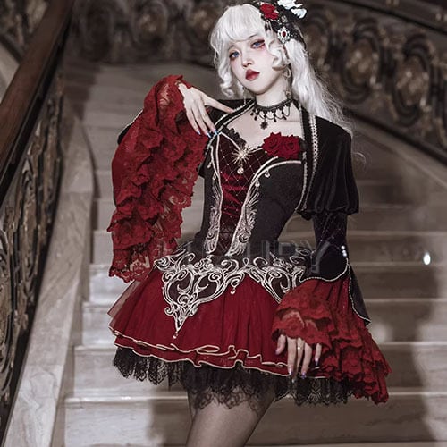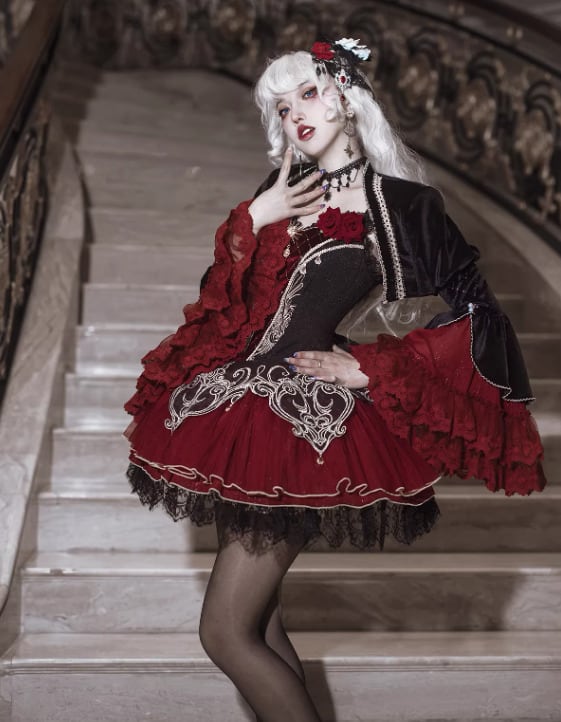 ゴスロリファッション ゴスロリ キャミワンピ + トップス 2点セット ヴァンパイア 吸血鬼 ミニ丈 ショート丈 膝上 暗黒系 妖艶 セクシー レディース ハロウィン イベント