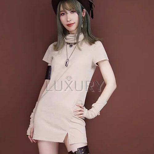 スチームパンク steampunk トップス + アームカバー 2点セット リブニット 半袖 タートルネック 金糸 アンティーク カジュアル きれいめ 夏コーデ デイリー お散歩