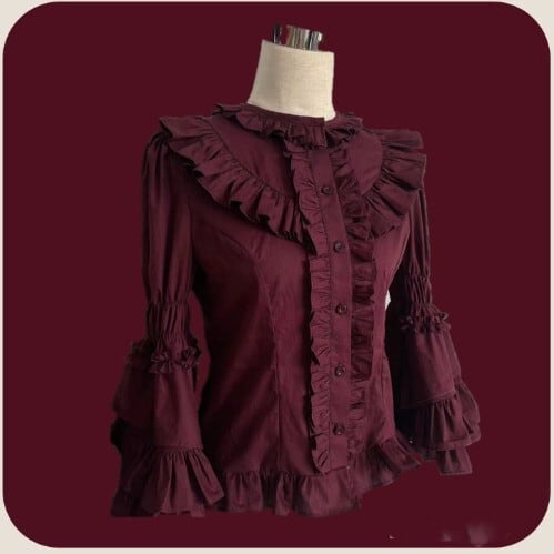 クラシカルロリータ クラロリ ブラウス のみ 無地 袖フリル フリル袖 ベルスリーブ アンティーク ゴシック 宮廷風 エレガント レディースファッション お茶会 イベント