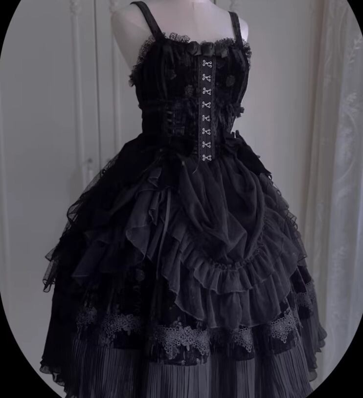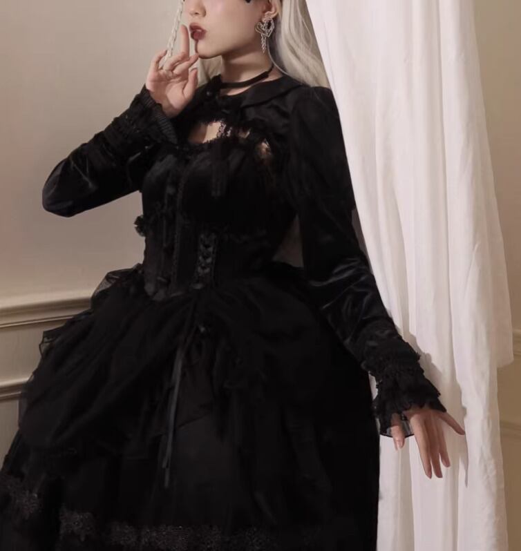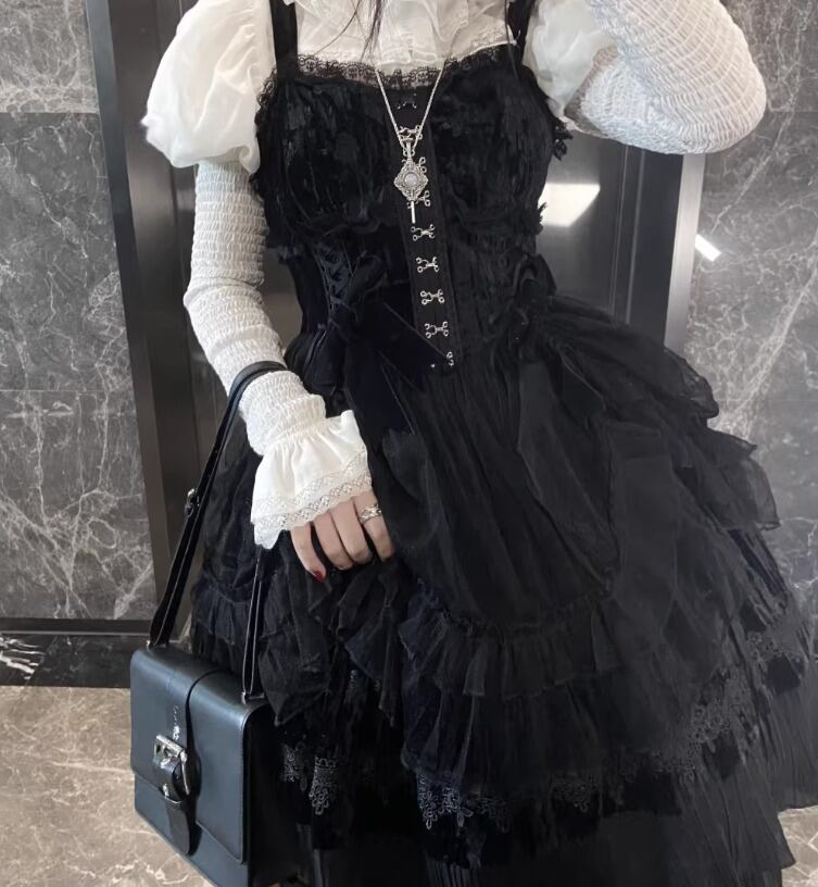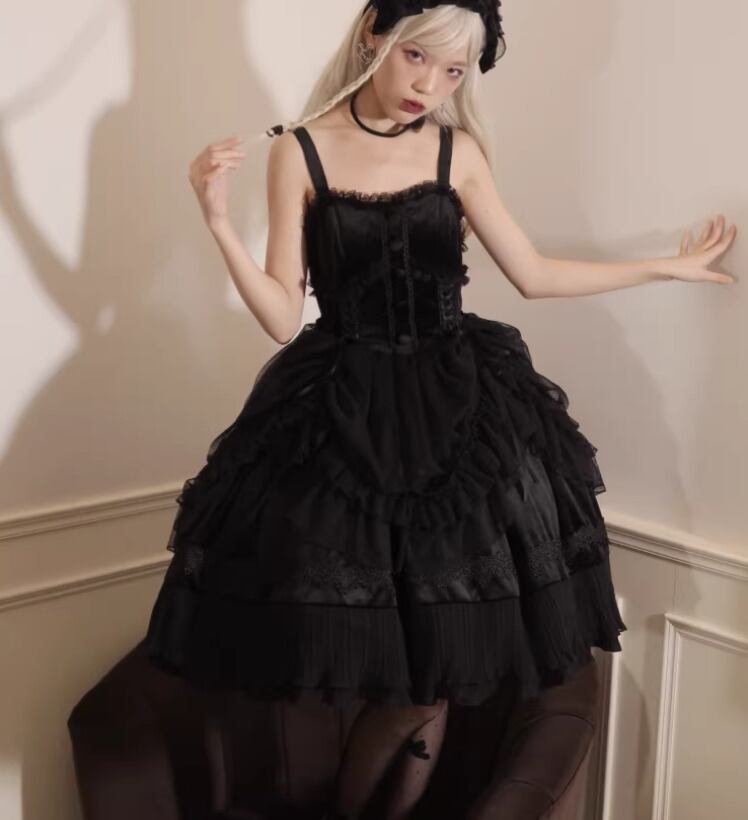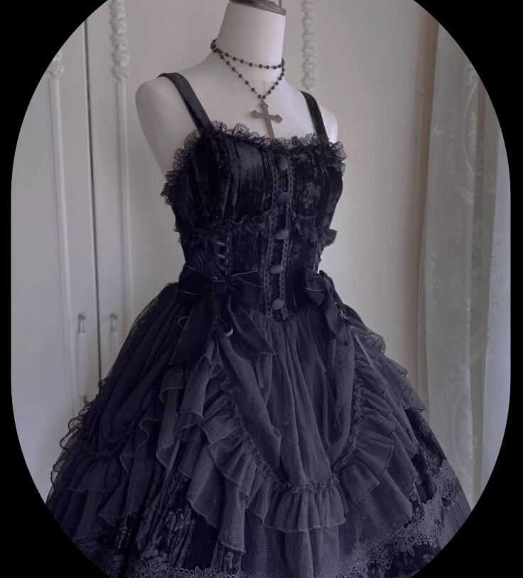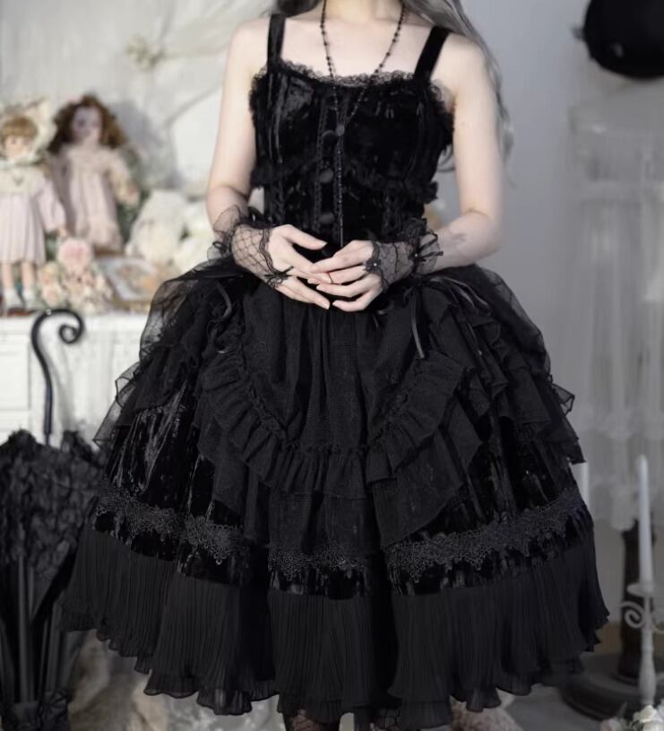 ゴスロリファッション ゴスロリ ジャンパースカート のみ 膝丈 ひざ丈 ミディアム 暗黒系 魔法使い クール ブラック エレガント レディースファッション イベント