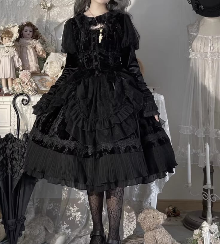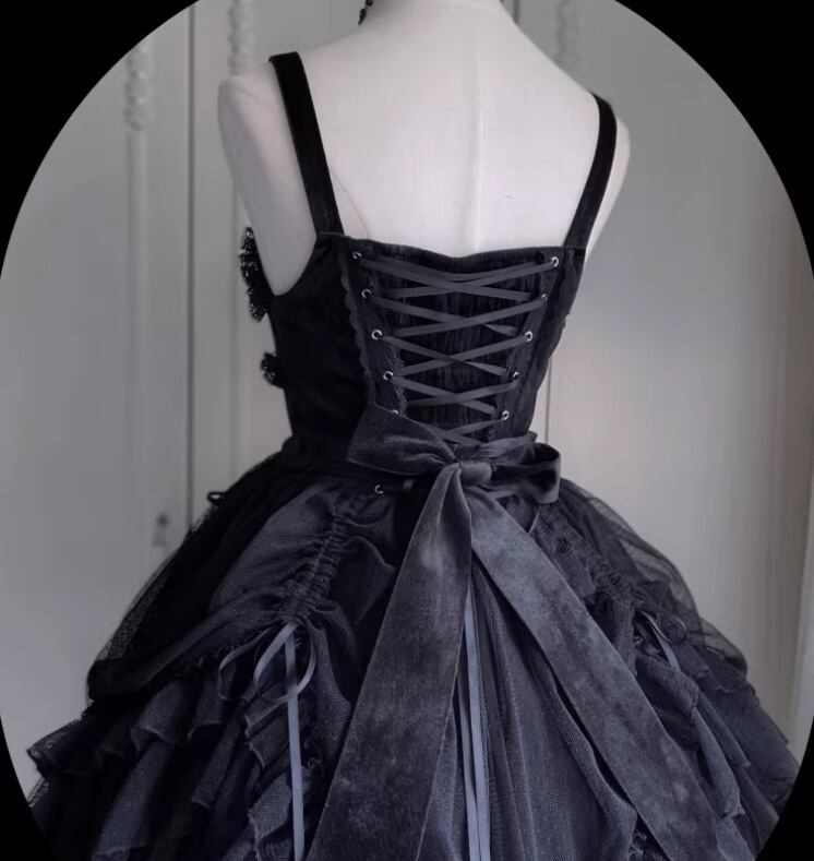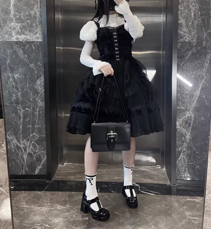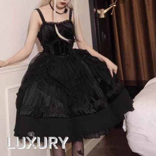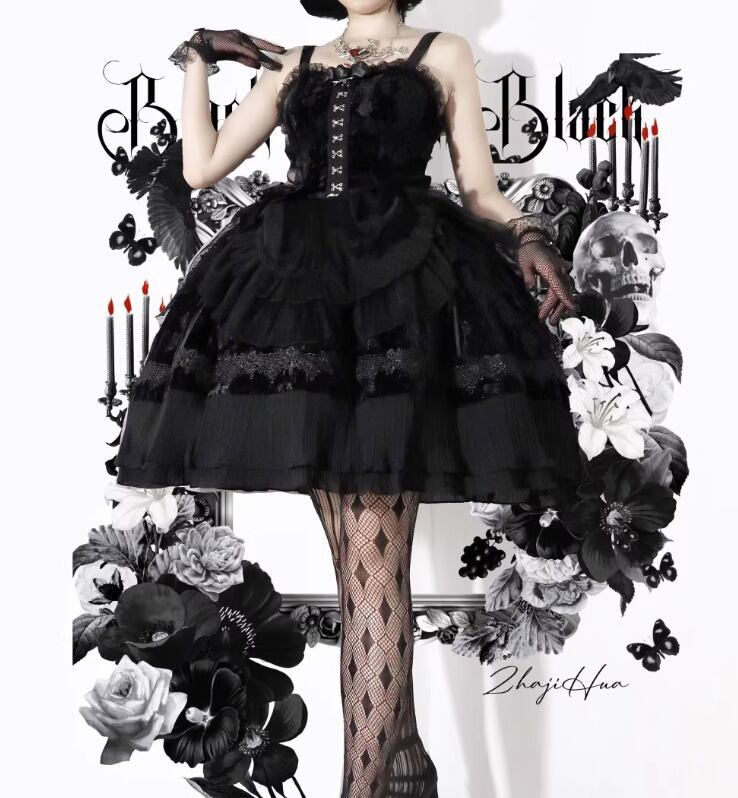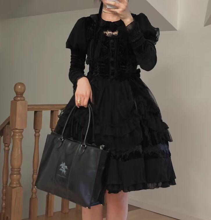 ゴスロリファッション ゴスロリ ジャンパースカート のみ 膝丈 ひざ丈 ミディアム 暗黒系 魔法使い クール ブラック エレガント レディースファッション イベント