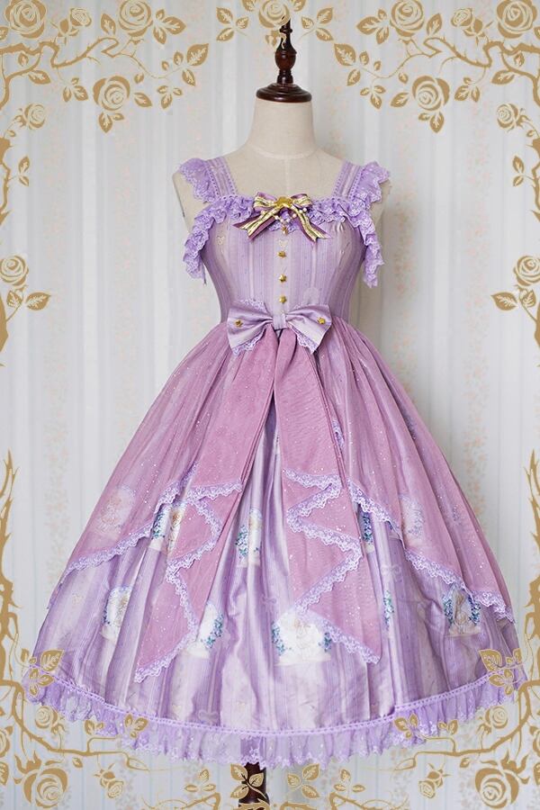【即納 現品限り】ロリータジャンパースカート JPS 甘ロリ フリル レース リボン フロントリボン ロココ調 音符柄 cnalb20087