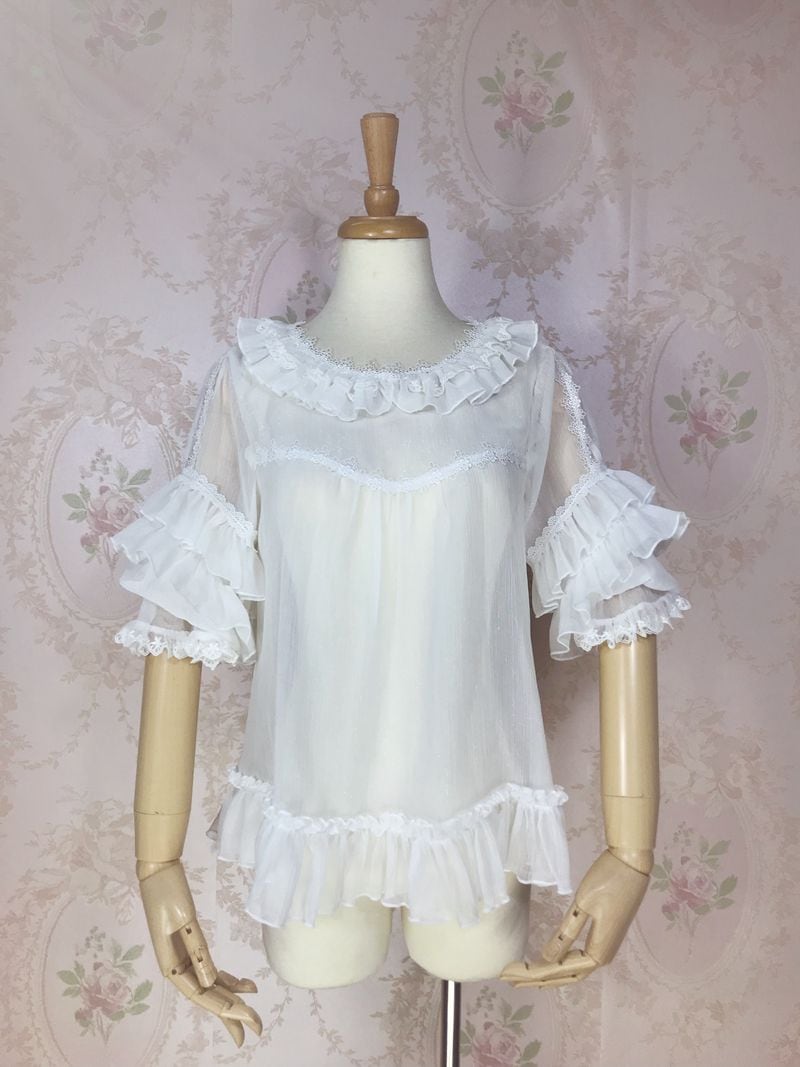 ロリータ シフォン 長袖ブラウス まくってもかわいい シースルー 姫袖 シャーリング 甘ロリ 白ロリ ロリータファッション cnalb20127