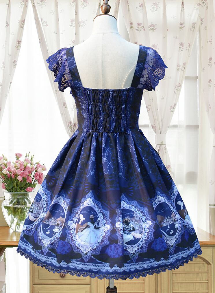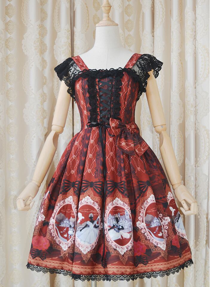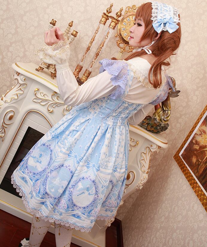 【一部即納】 ロリータ 童話柄ジャンパースカート jsk ジャンスカ レースアップ フリル レース リボン 甘ロリ 姫ロリ ゴスロリ ロリータファッション レディース ドレス ひざ丈 ロリィタ cnalb20261